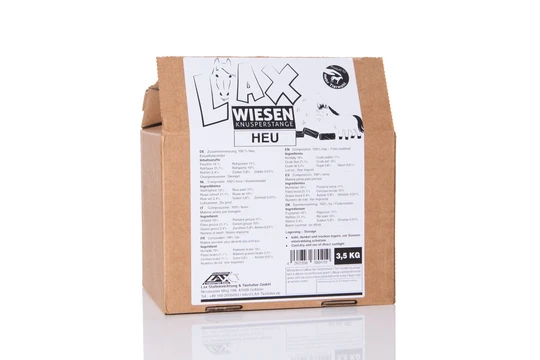 Lax products are the healthy snack for horses. They combine natural ingredients with a unique taste and careful processing, thus offering the best conditions for high-quality feed. The deliciously crispy sticks have the best properties and indulge horses with important nutrients. The feed has a low sugar content and is the ideal supplement for a balanced diet. The horse feed is made from lucerne and hay from controlled cultivation and is free from grain and molasses. Fresh from the pasture, the ingredients are immediately processed and pressed into a long, round shape. The healthy roughage snack is very comprehensive and ensures long-term nibbling pleasure.
