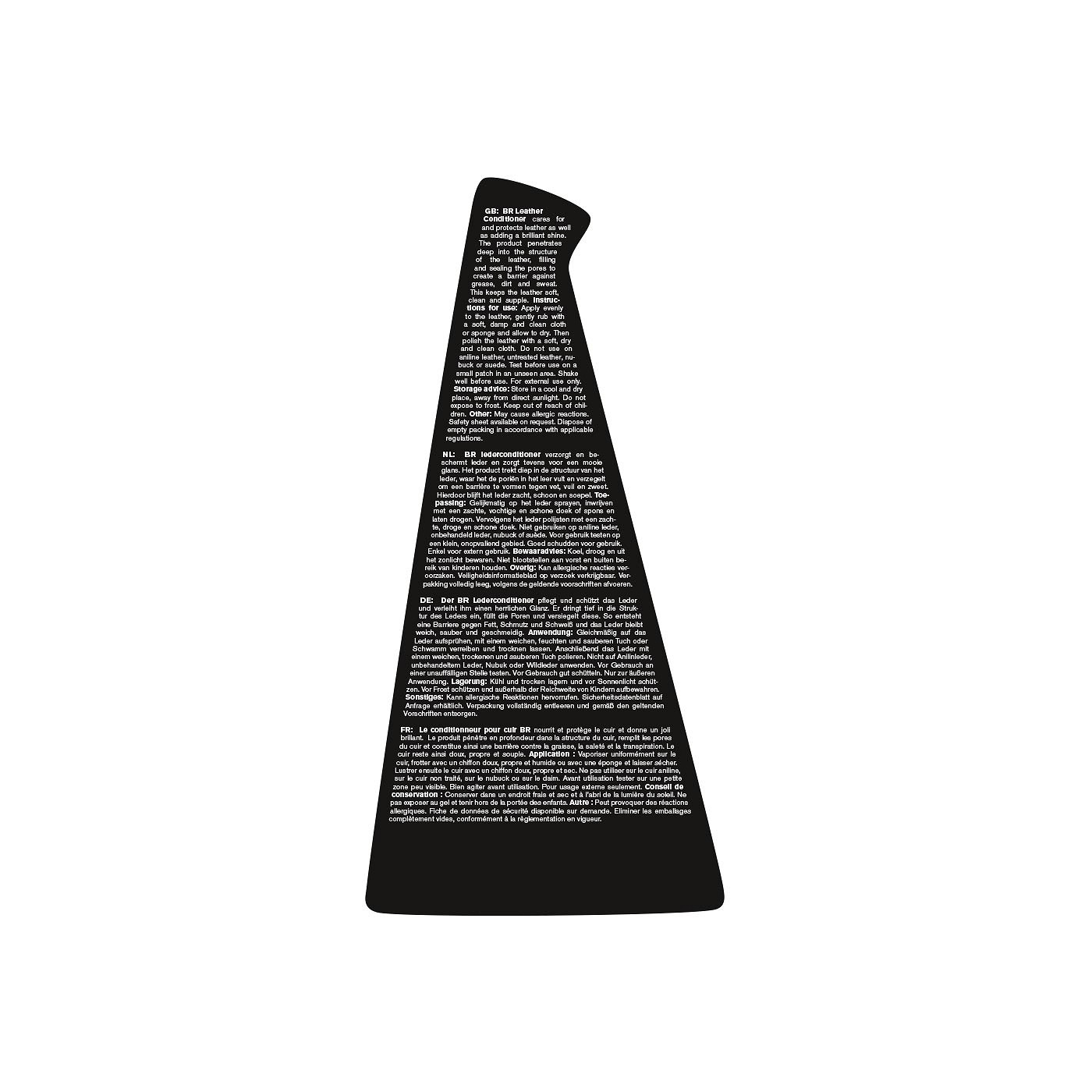 Instructions for use: Apply evenly to the leather, gently rub with a soft, damp and clean cloth or sponge and allow to dry. Then polish the leather with a soft, dry and clean cloth. For optimal results, clean the leather before conditioning with BR Leather Cleaner, article 763001. Regular use will extend the life of your leather. Do not use on aniline leather, untreated leather, nubuck or suede. Test before use on a small patch in an unseen area. Shake well before use. For external use only. Volume 500 ml. PU 6.