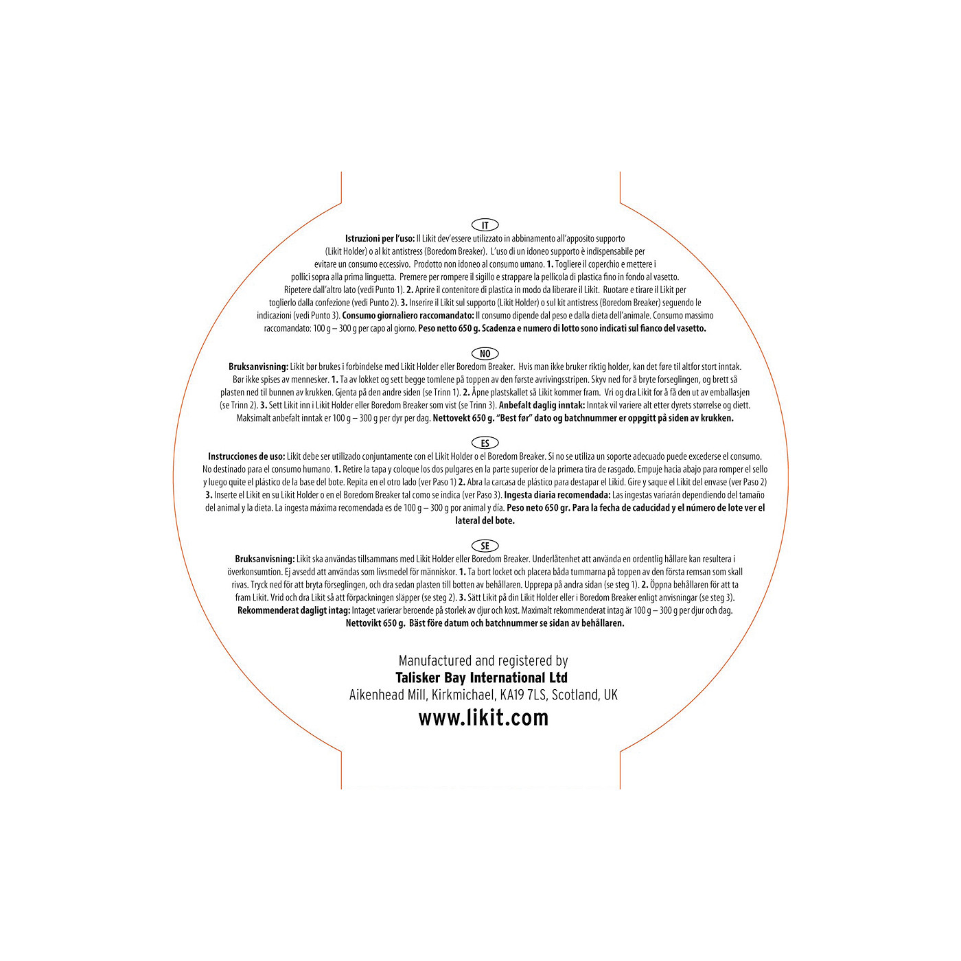 Use with Likit Boredom Breaker, article 829974 and Likit Holder, article 829979. 650 g – PU 12
