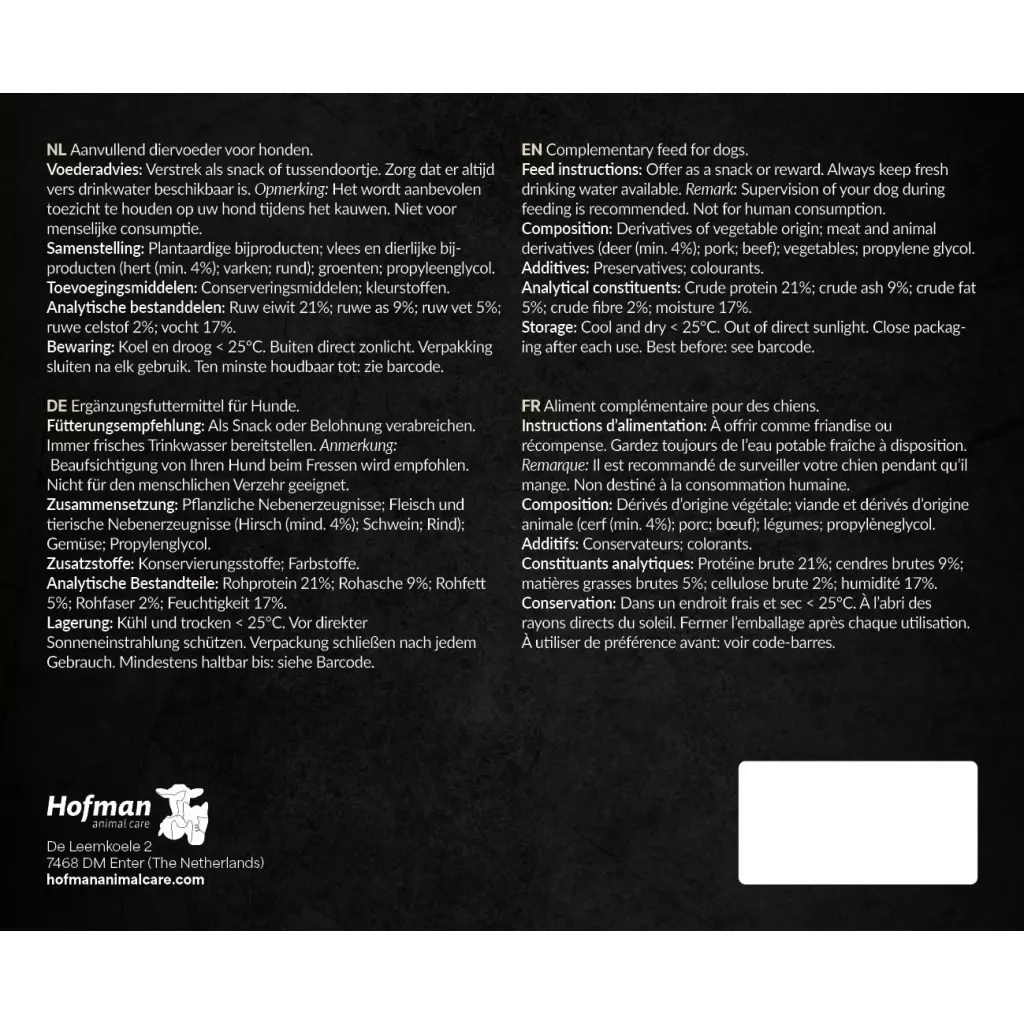 This training treat is a semi-moist soft reward. That means the snacks retain a little moisture, making them extremely rich in taste and smell. That’s why they are ideal for dog trainers and owners to reward their dogs and puppies for good behavior during training sessions or courses. The Deer Drops are made with venison, a protein source that is well tolerated by many dogs. These training treats contain no added sugars and best of all, they are made in the Netherlands!