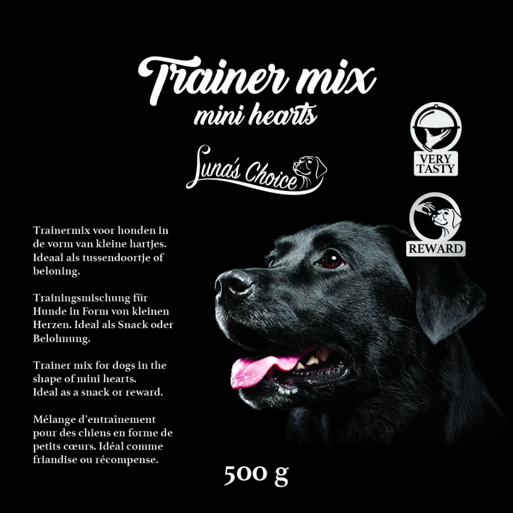 All you need is love! And all small dogs love this surf and turf snack! This trainer-snack is filled with delicious meat and salmon and is a semi-moist soft reward. This means that these snacks are still slightly moist and therefore extremely powerful in taste and smell. That is why this is the ideal snack for dog trainers and dog parents, in order to reward their dog and puppy for their good behaviour during trainings. These trainer snacks do not contain added sugars and best of all; they are made in the Netherlands!