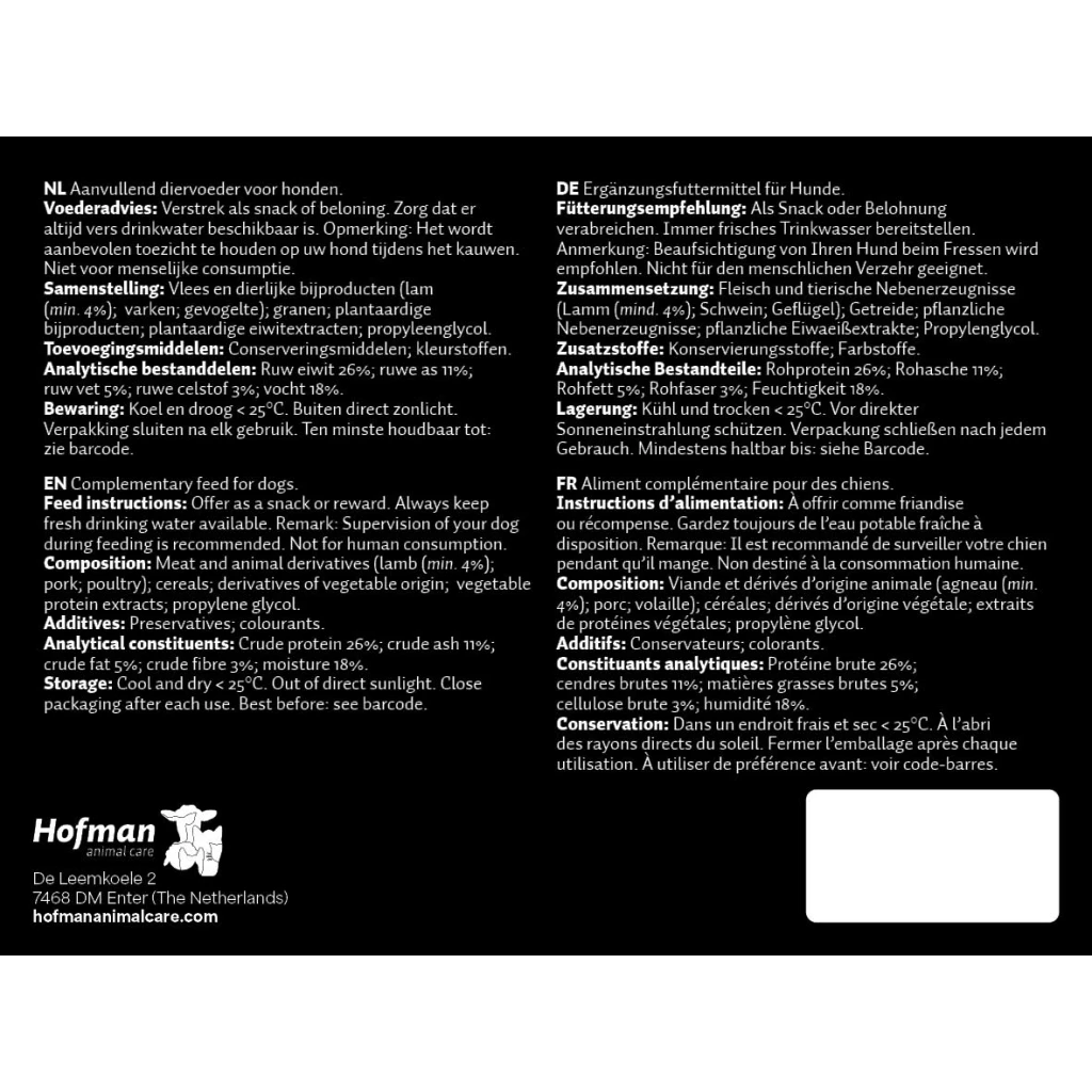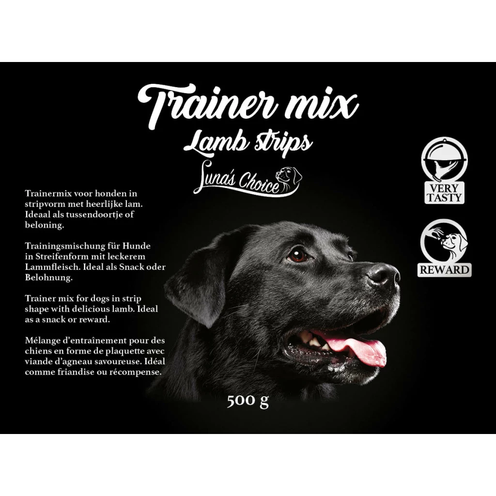 The delicacy for every dog! Luna’s Choice Trainer mix is a complementary pet food that can be given as a reward or snack. This trainer snack is a semi-moist soft reward. This means that these snacks are still slightly moist and therefore extremely potent in taste and smell. Ideal for learning and training purposes. The balanced composition of grains, meat, fish, vegetable and animal by-products make for an extremely tasty snack! This is the Lamb Strips variant: strips with the delicious smell and taste of lamb meat! This trainer snack contains no added sugars. Our faithful four-legged friends love snacks, so give them the tastiest with Luna’s Choice Trainer mix!