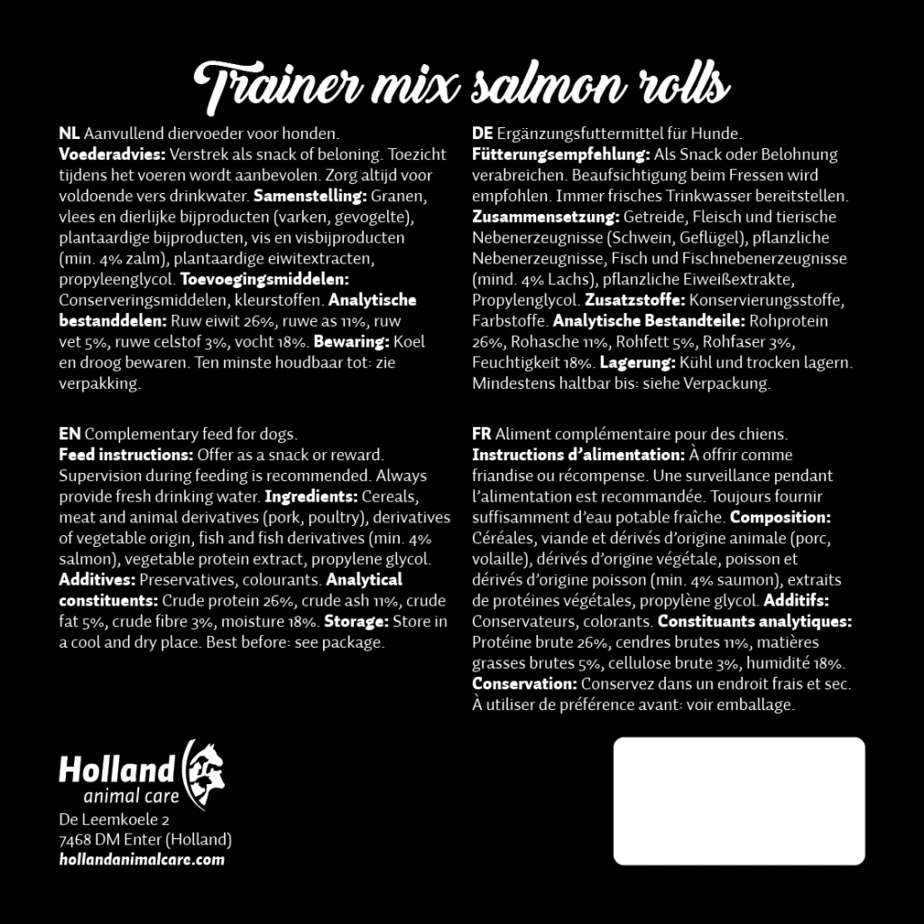 This stick is filled with delicious salmon and is a semi-moist soft treat. This means that these snacks are still slightly moist and therefore extremely powerful in taste and smell. This stick is 11 cm long and 1 cm in diameter. It is a delicious treat for your dog and can also be broken into small pieces to use as a snack during training to encourage good behavior. Best of all, these treats are made in the Netherlands!