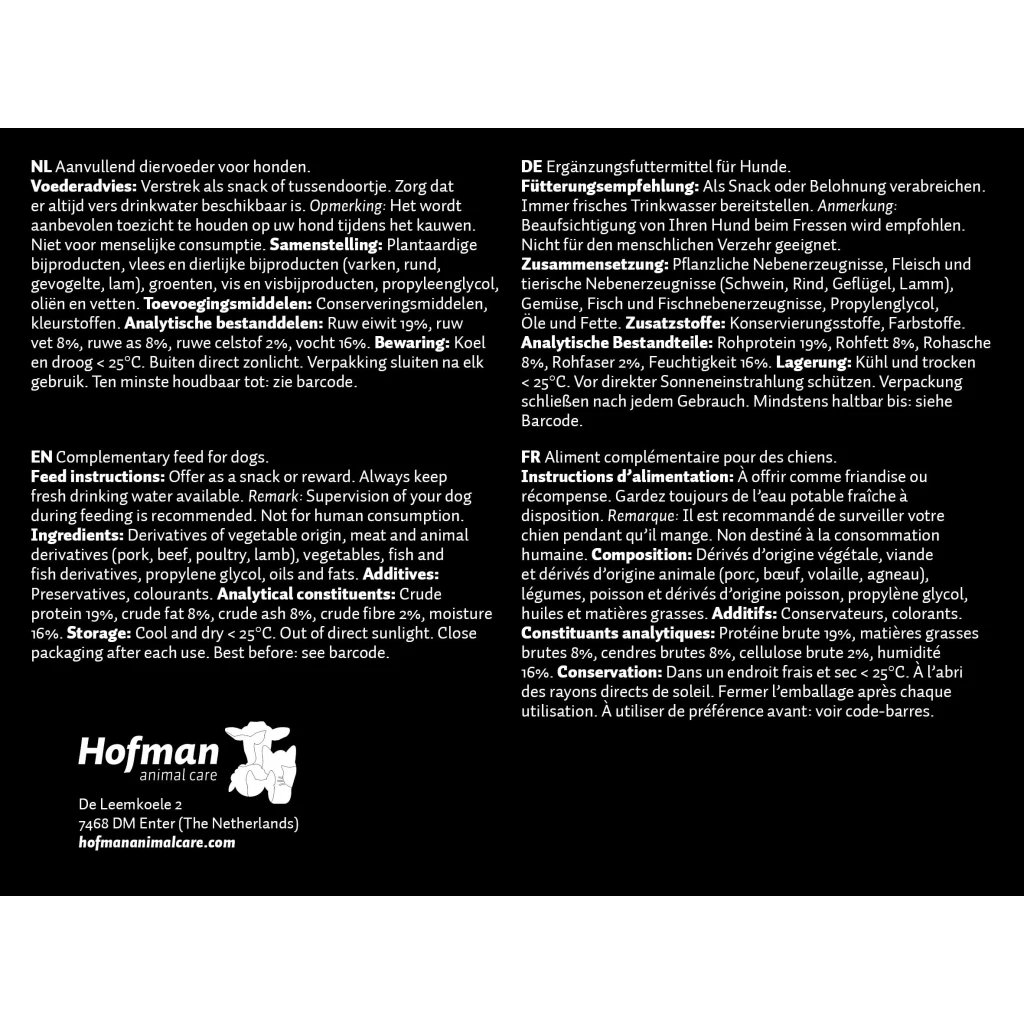 This trainer-snack is filled with delicious chicken and is a semi-moist soft reward. This means that these snacks are still slightly moist and therefore extremely powerful in taste and smell. That is why this is the ideal snack for dog trainers and dog parents, in order to reward their dog and puppy for their good behaviour during trainings. These trainer snacks do not contain added sugars and best of all; they are made  in the Netherlands!
