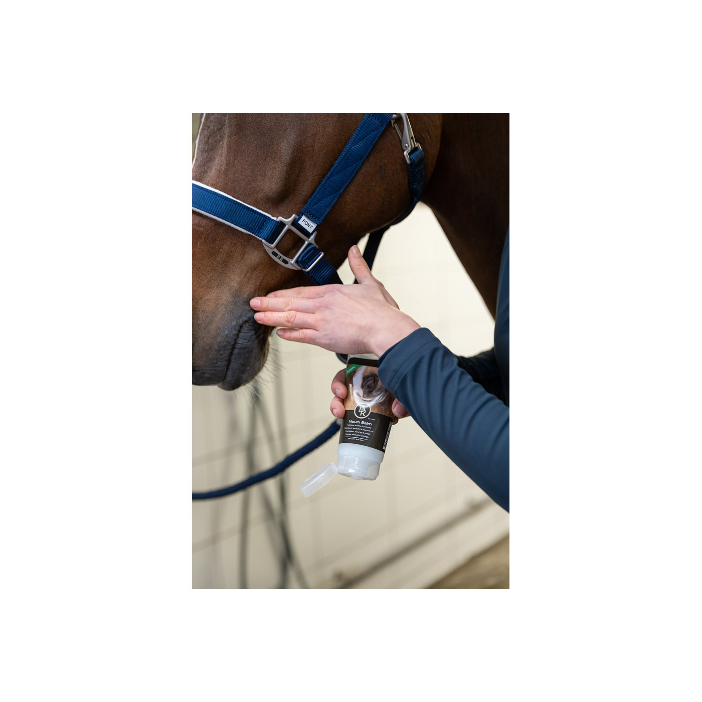 BR mouth balm with allantoin hydrates, sooths and protects the sensitive mouth of the horse and the mouth corners in particular. In addition, the balm allows the bit to move smoothly in the mouth. Its pleasant apple flavour encourages the chewing process and saliva production and this will help to achieve a pleasant connection between bit and mouth. Apply the balm to the corners of your horse’s mouth before and after riding. If desired, you can also apply the balm to the bit mouthpiece to encourage bit acceptance and to extra stimulate chewing activity and salivation. Suitable for daily use.