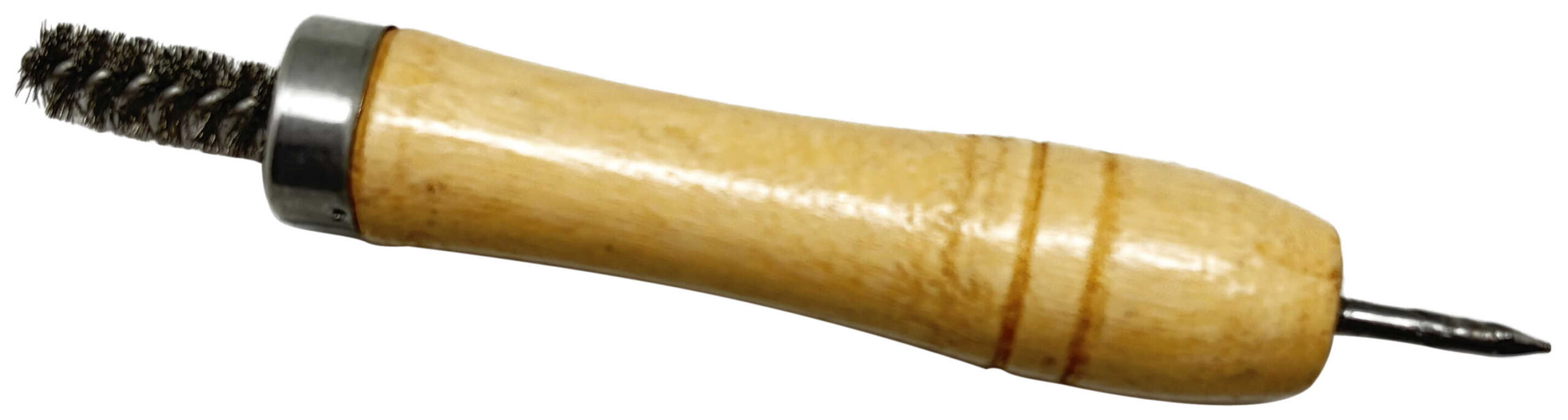 – 2-in-1 brush. – Anatomical wooden handle with a brush on one side and a pointed tip on the other.