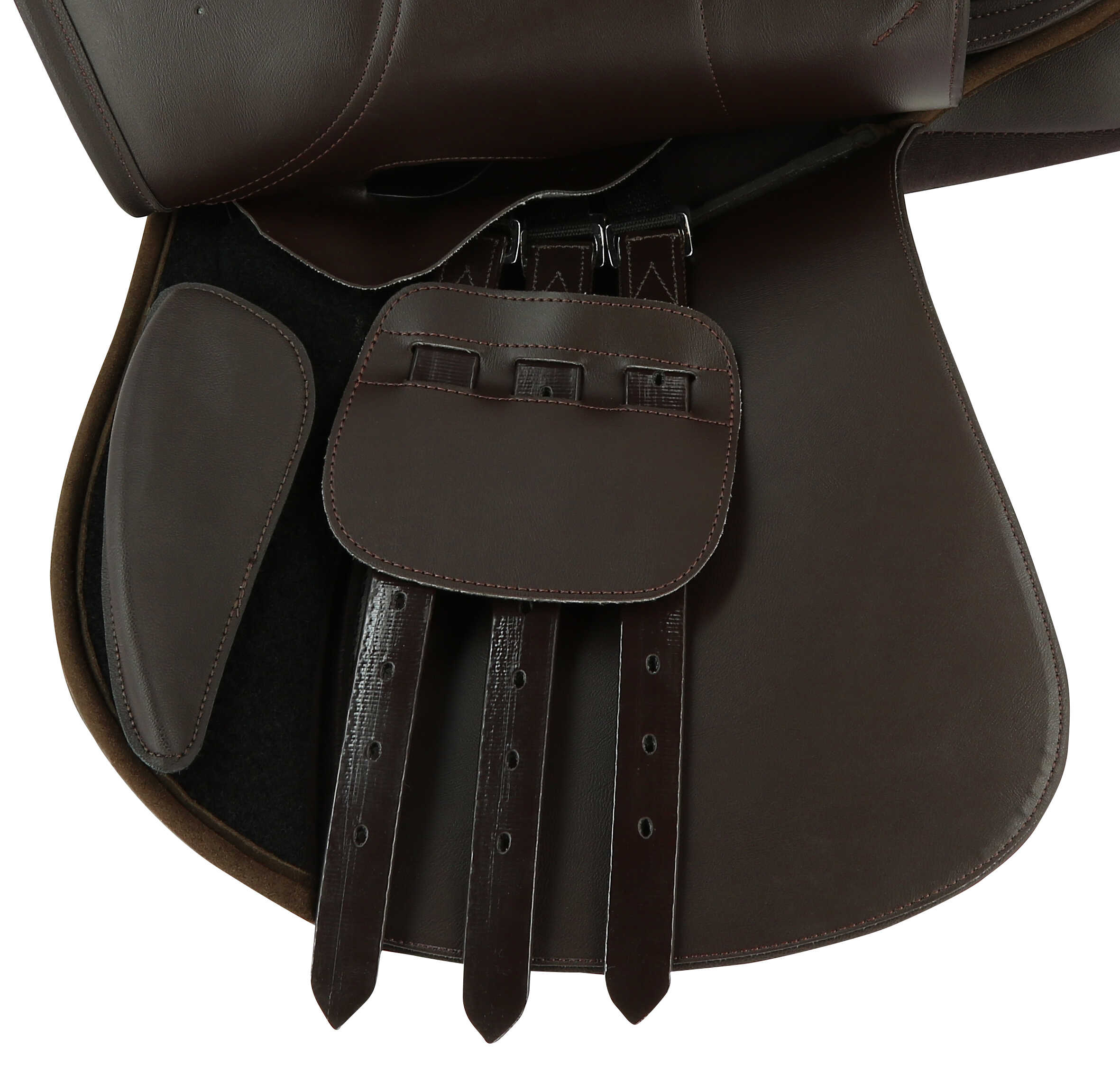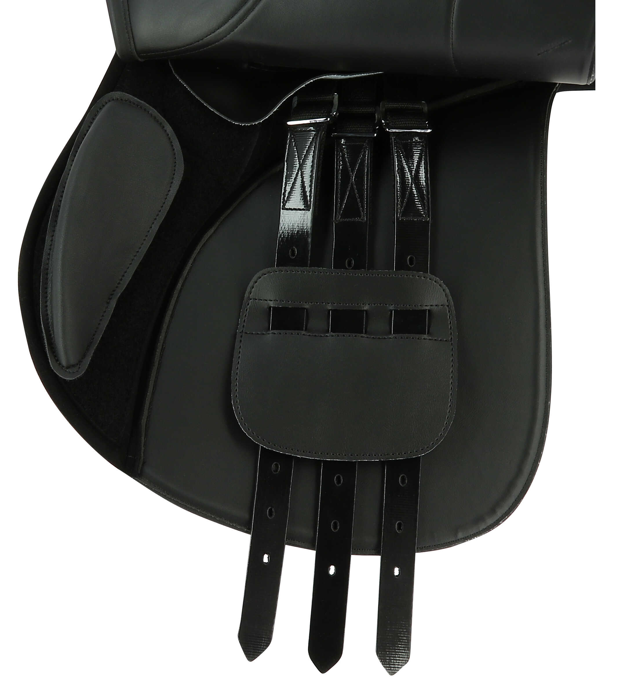 – Reinforced lower section. Wool-filled padding. Reinforced PVC girth straps mounted on rings.