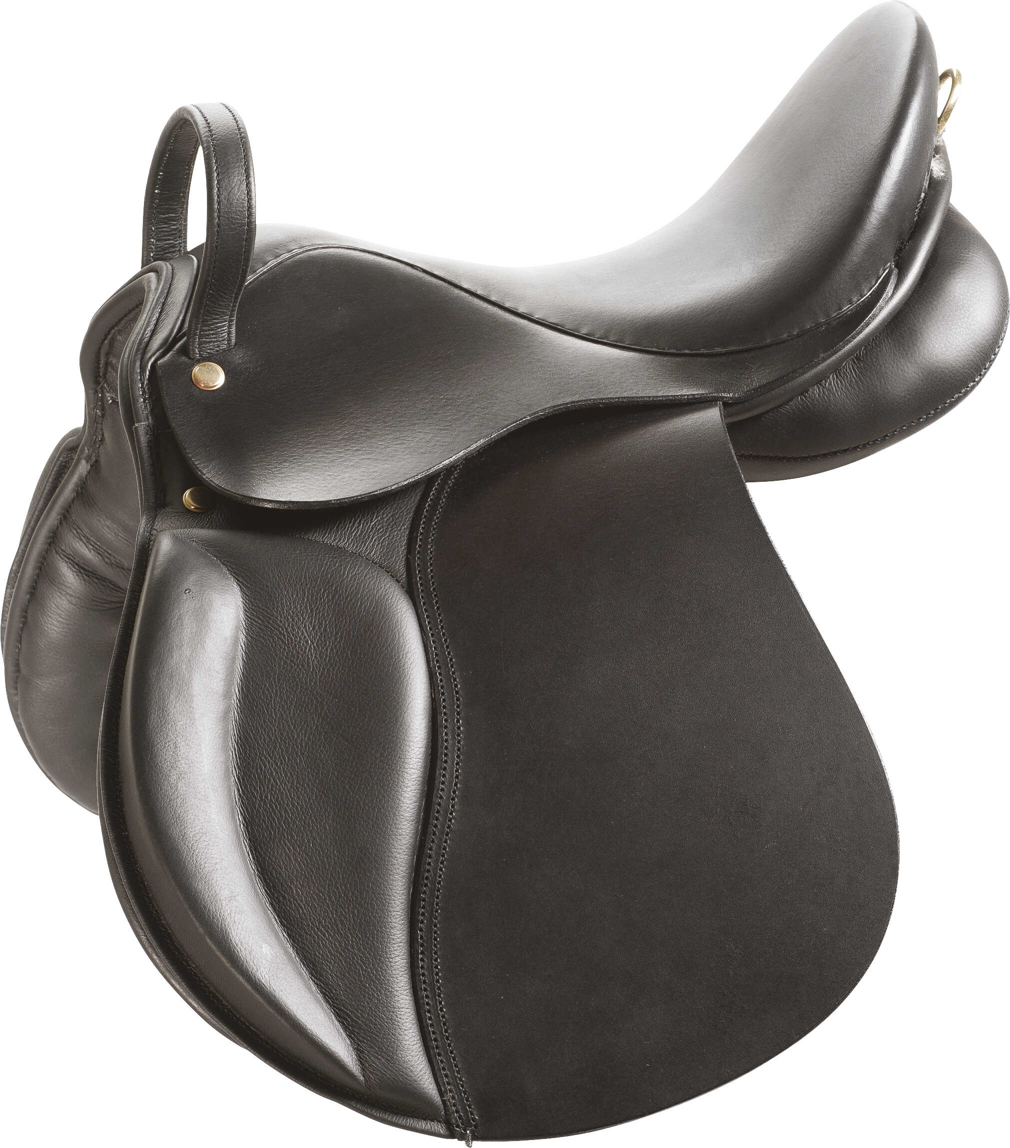 – Cowhide panels, padded with wool, mounted on a wooden tree covered with fiberglass. Equipped with sturdy stirrup leathers and a crupper ring.