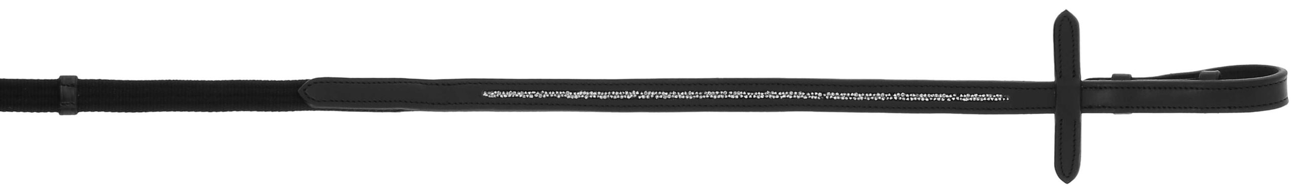 – Elegant design: Fine straps with embedded rhinestones and black stitching.