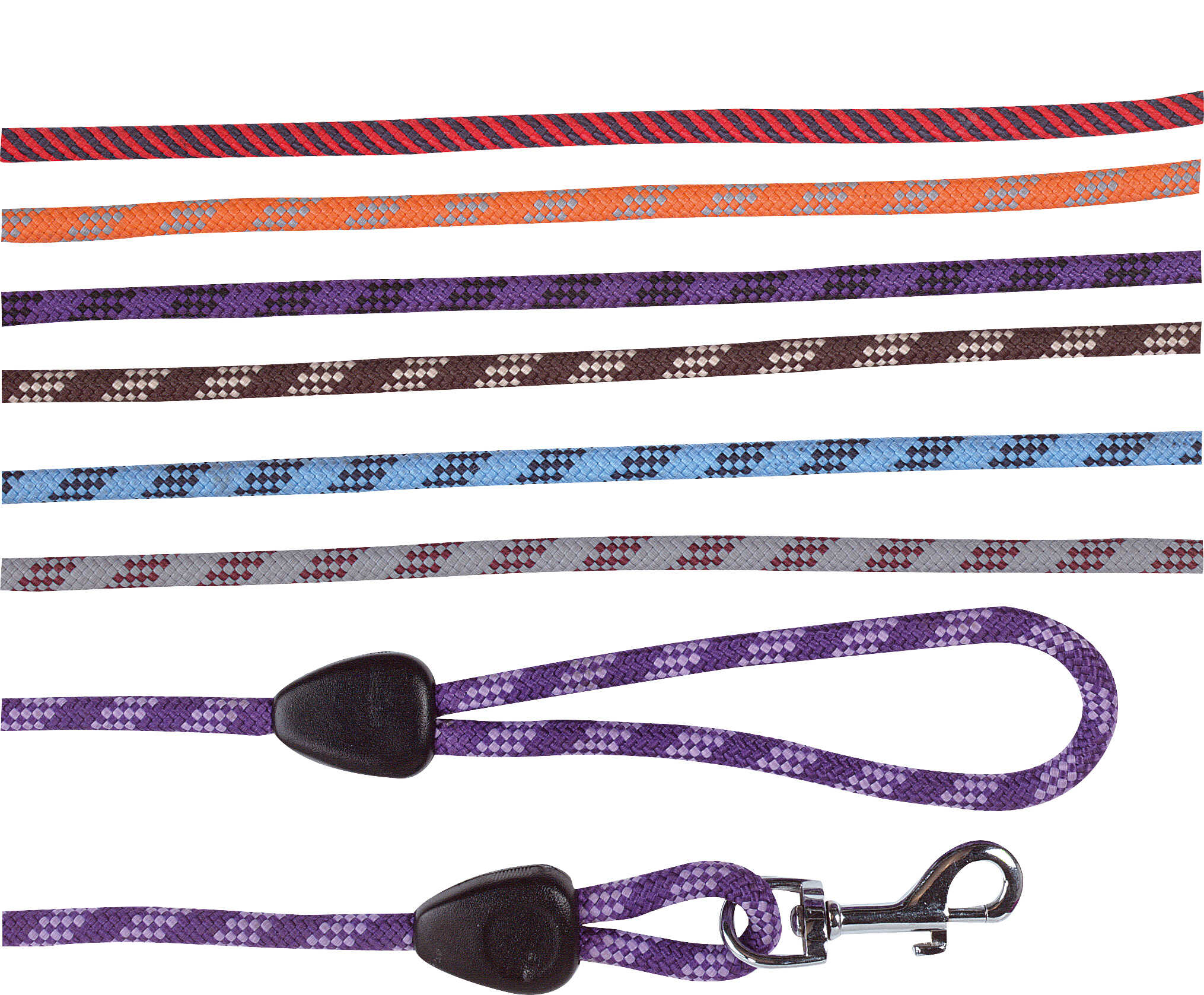 – Nickel-plated, rotating snap hook.