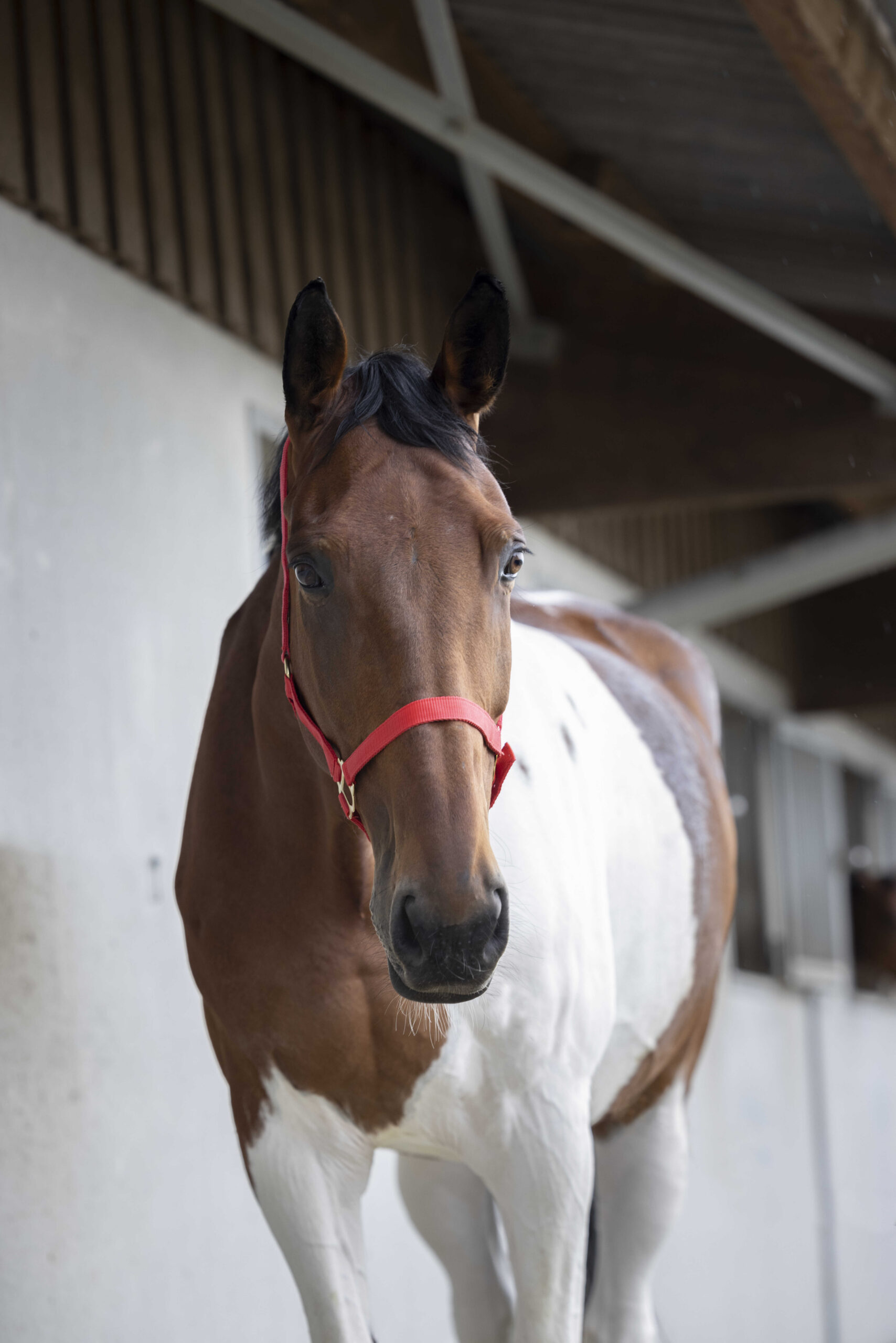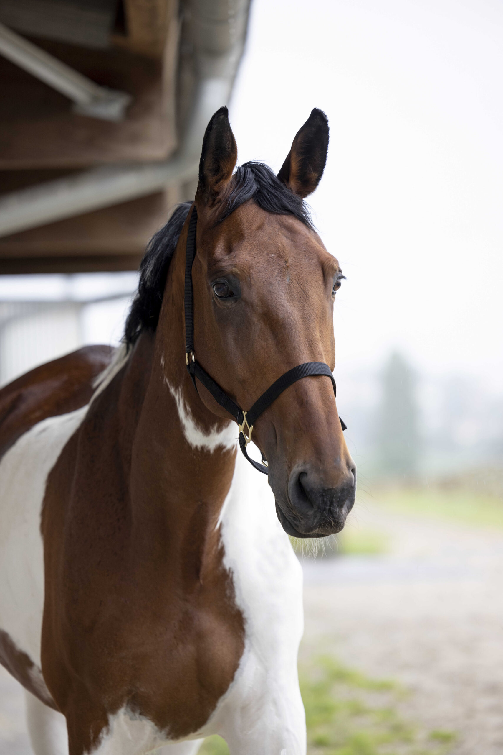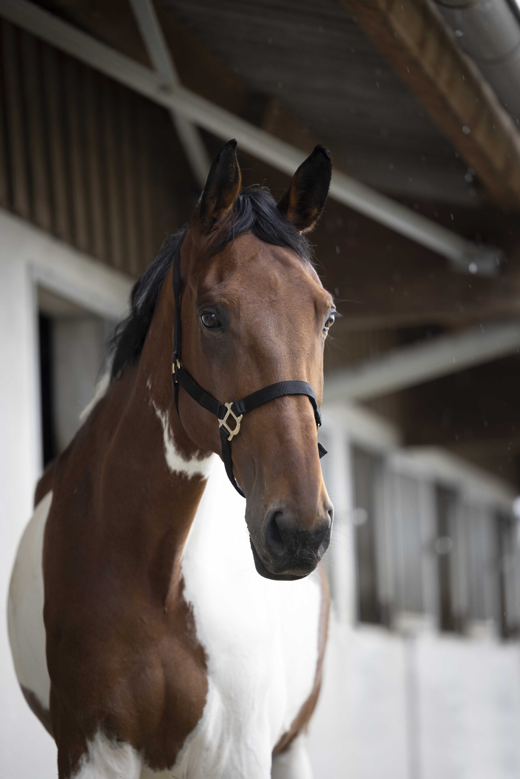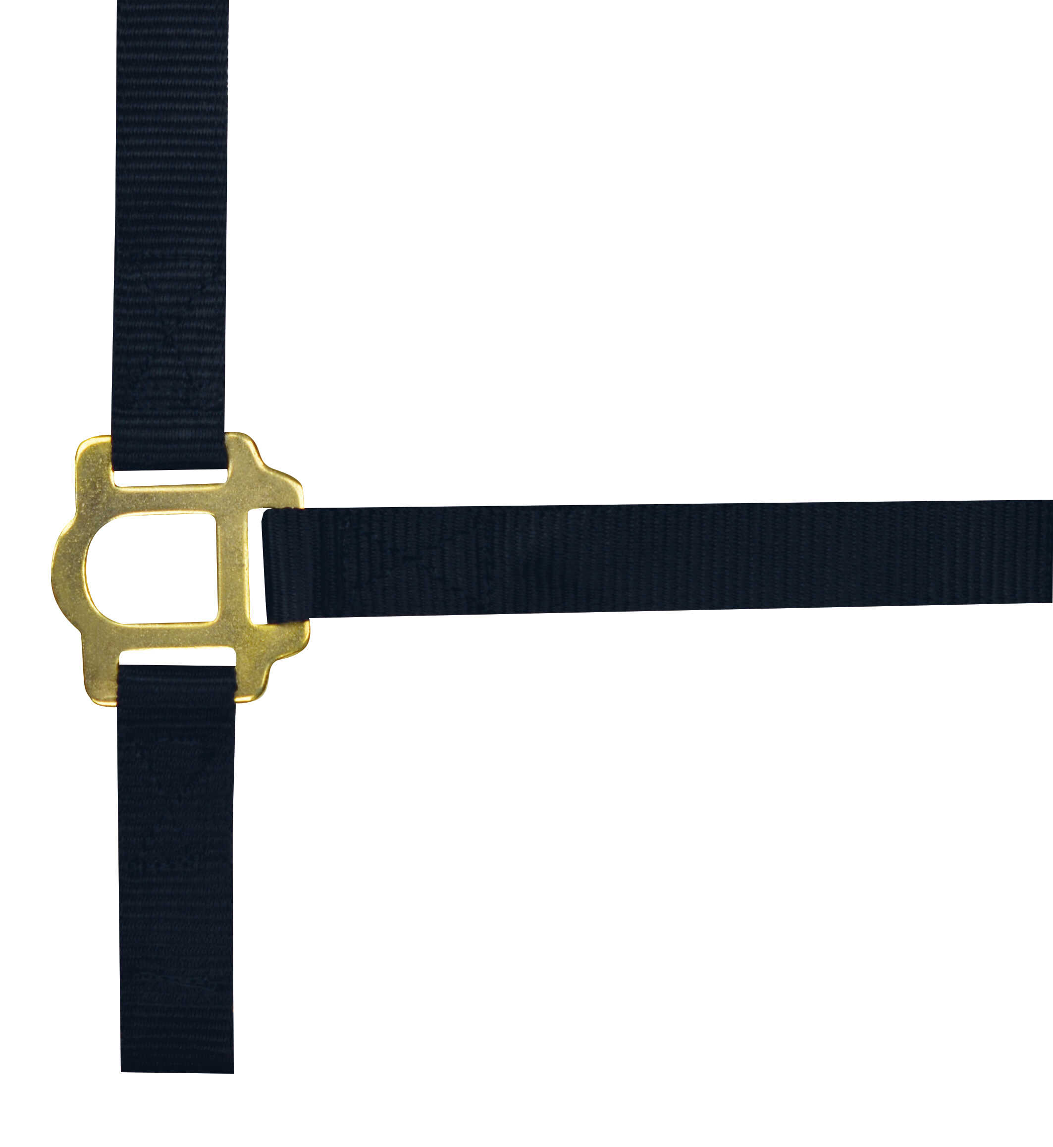 A sturdy halter with gold hardware.
