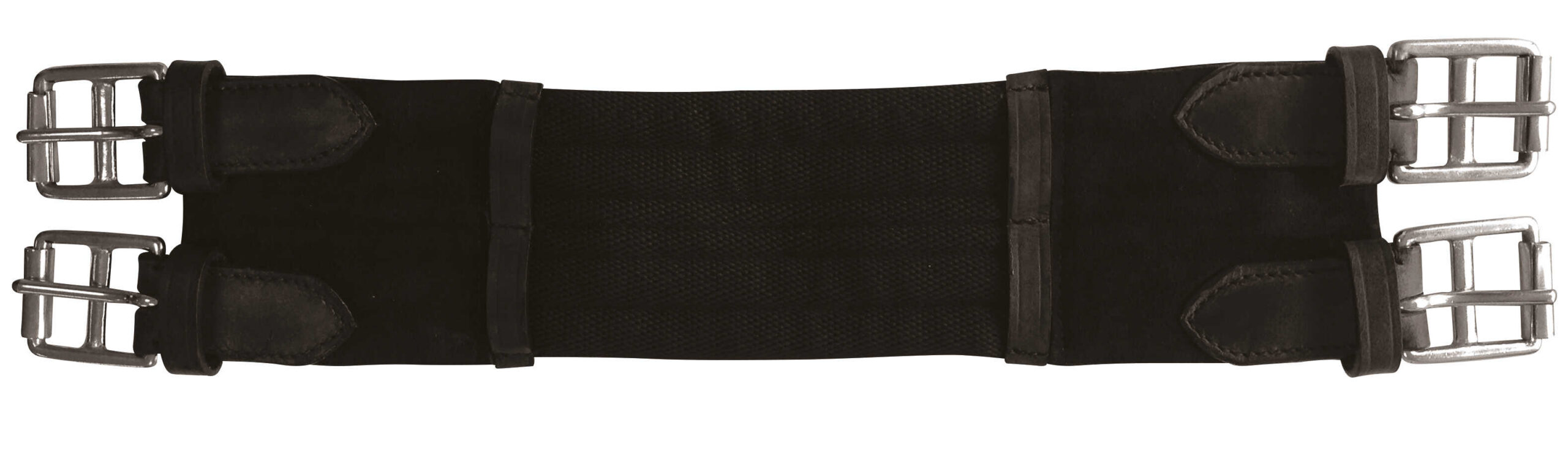 – Stainless steel roller buckles on buffalo leather straps and leather loops.