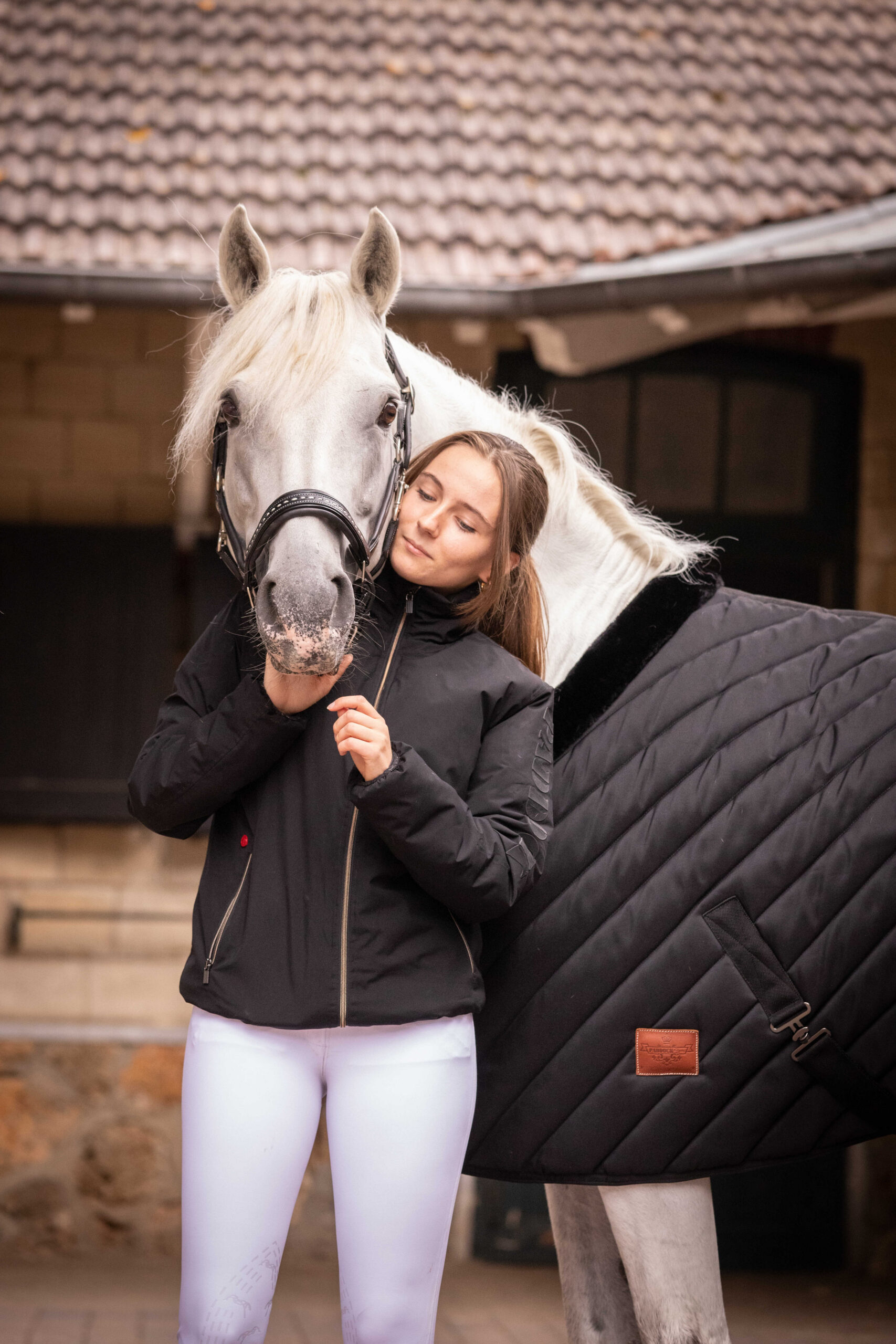 Stiilne ja sportlik bomber-stiilis ratsajope, mis ühendab mugavuse ja praktilisuse. Ees on täispikk lukk ja kaks lukuga küljetaskut. Jope sisevooder on õhukese fliisiga tepingus, mis annab soojust ilma liigset raskust lisamata. Sees, paremal pool, on trukiga põuetasku.