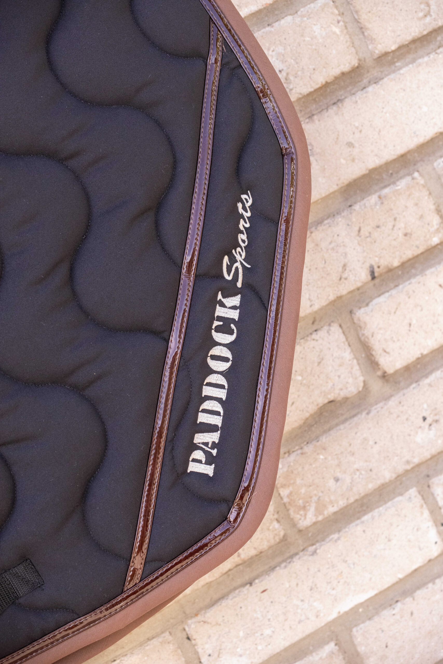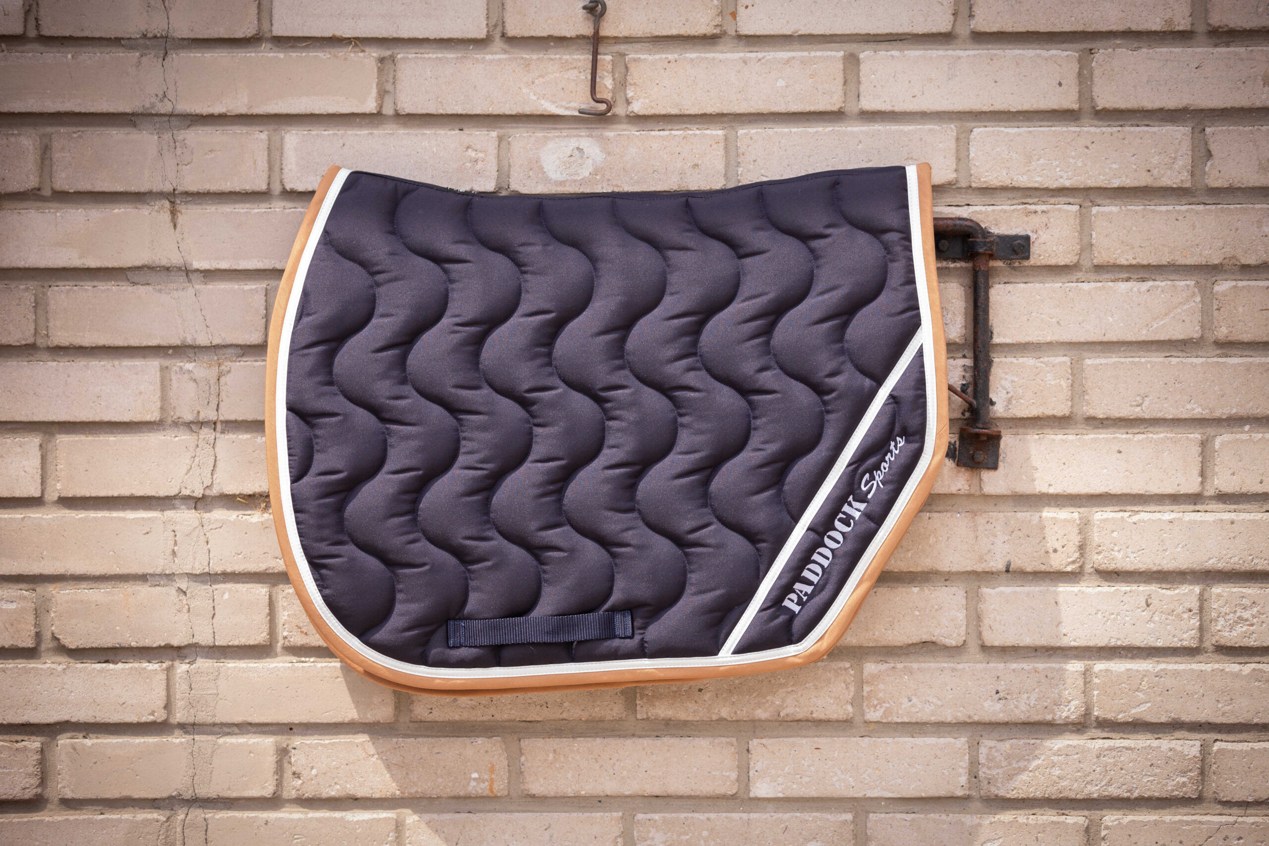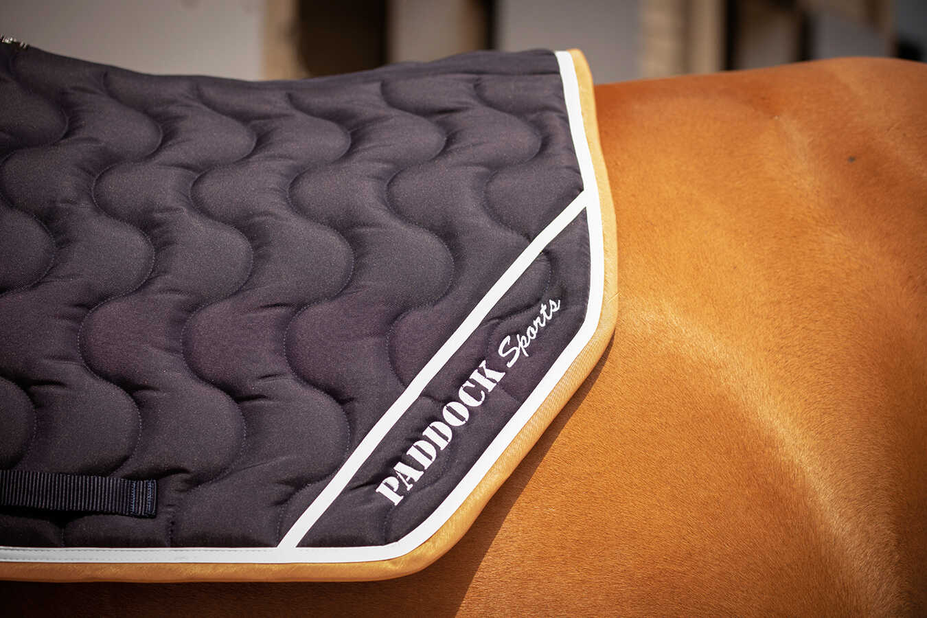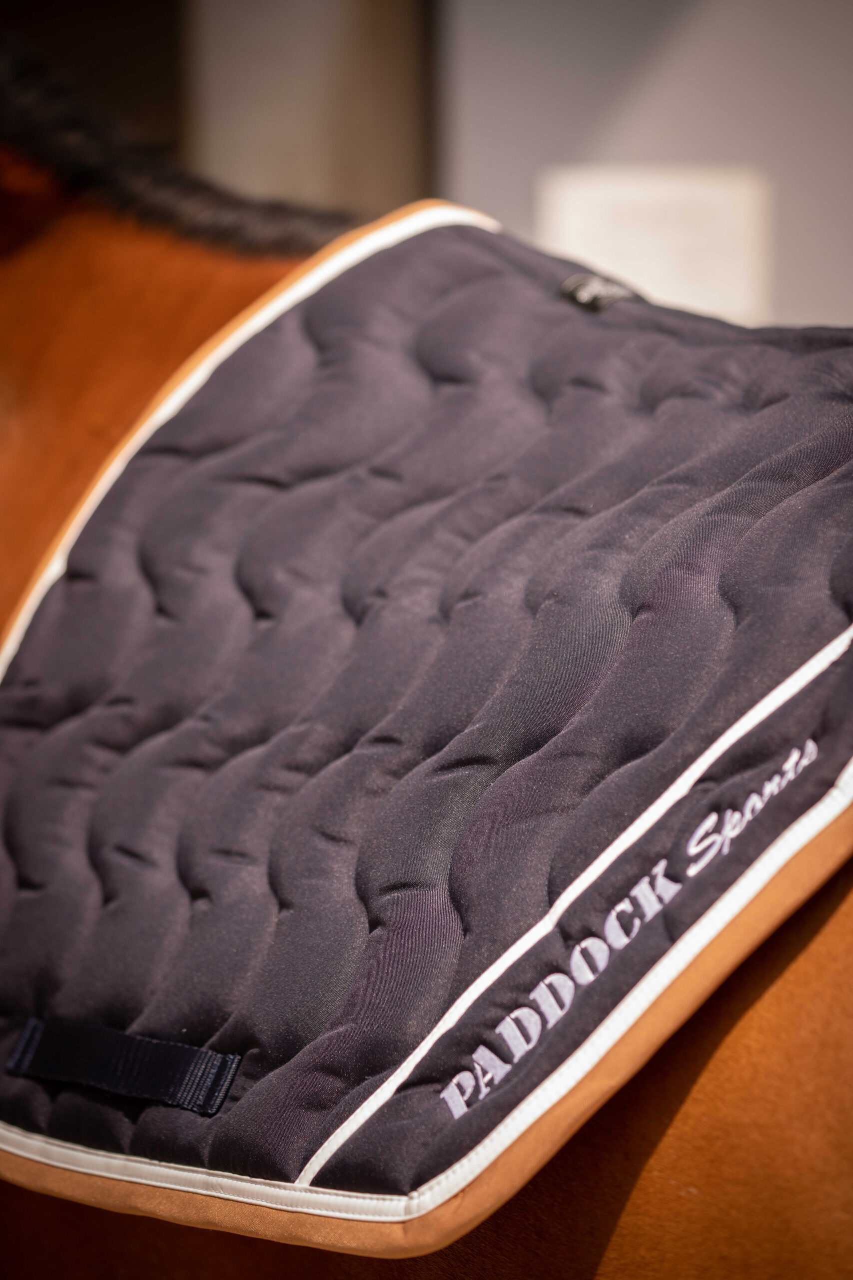 Made in France, this sports saddle pad is lined with a honeycomb fabric. Vertical wave quilting. The anatomical shape offers plenty of wither clearance. Girth openings on both sides of the saddle pad. The two-layer foam and honeycomb lining ensure high sweat absorption. Always comes with PADDOCK SPORTS embroidery on the left side, matching the binding color.