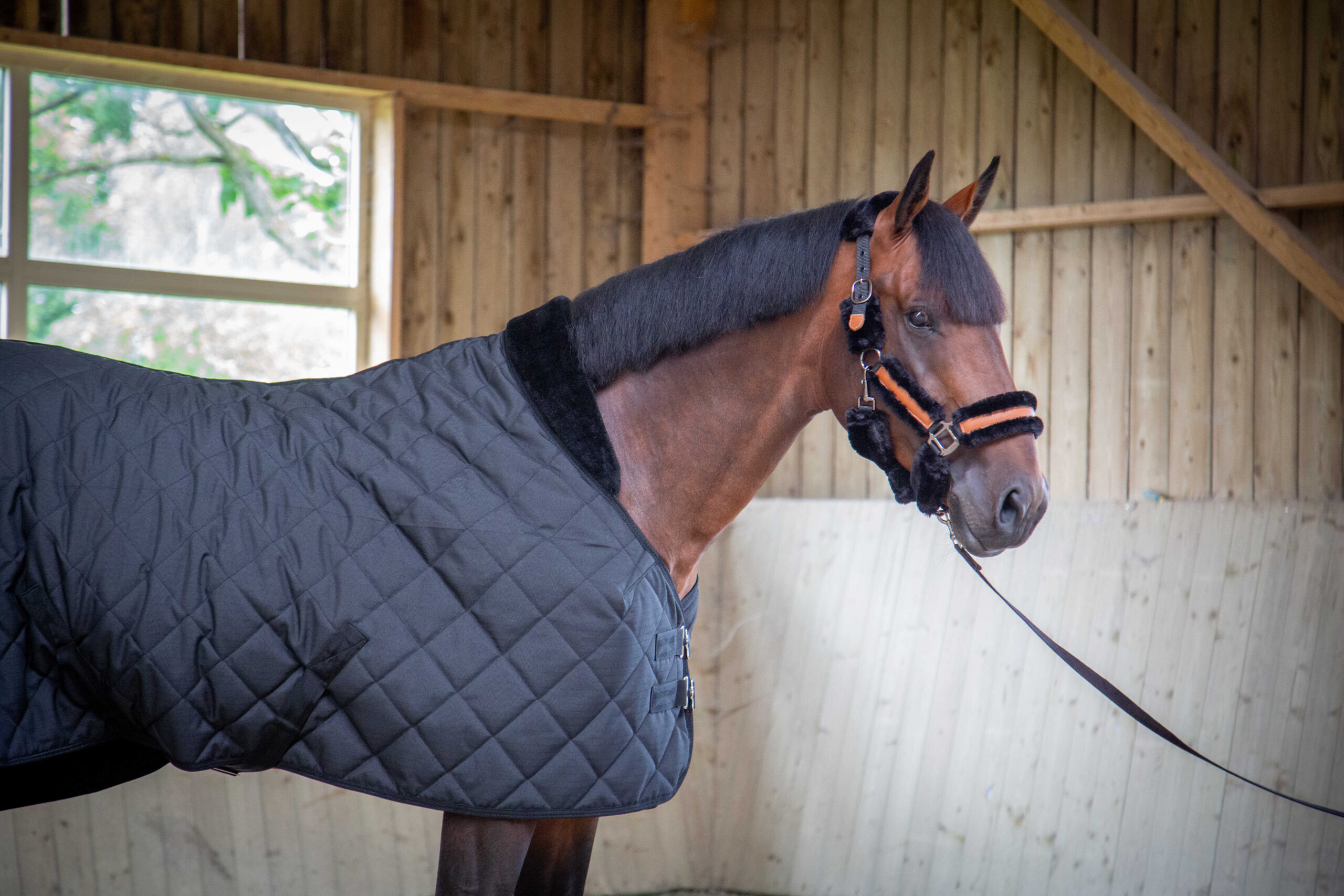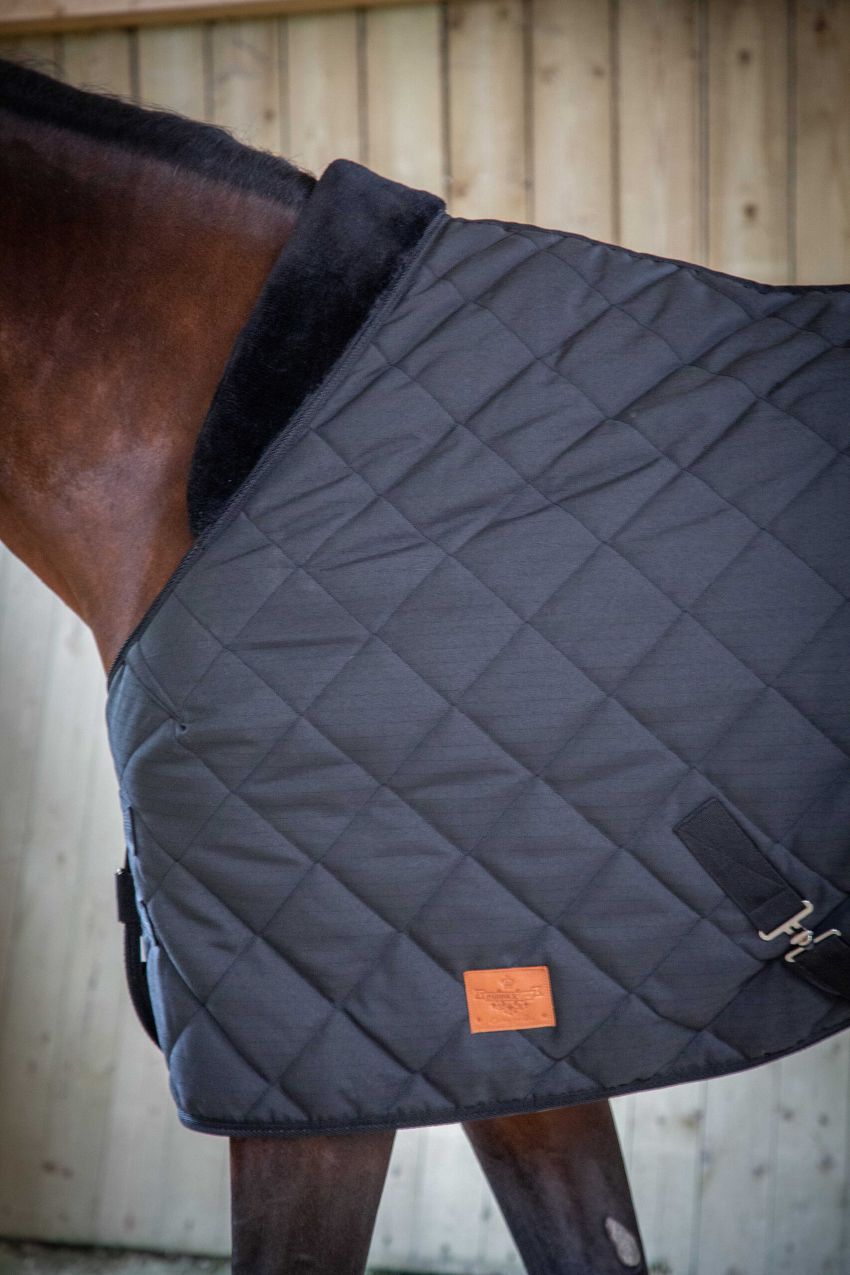 This stable rug features soft faux fur padding at the withers. The 50g rug is perfect for transitional wear and can be used in combination with our under rug or on its own. The shoulder area is well-shaped. A sporty cut on the back ensures a perfect fit. Two hook closures on the chest and two cross surcingles. A nylon tail cord is included.