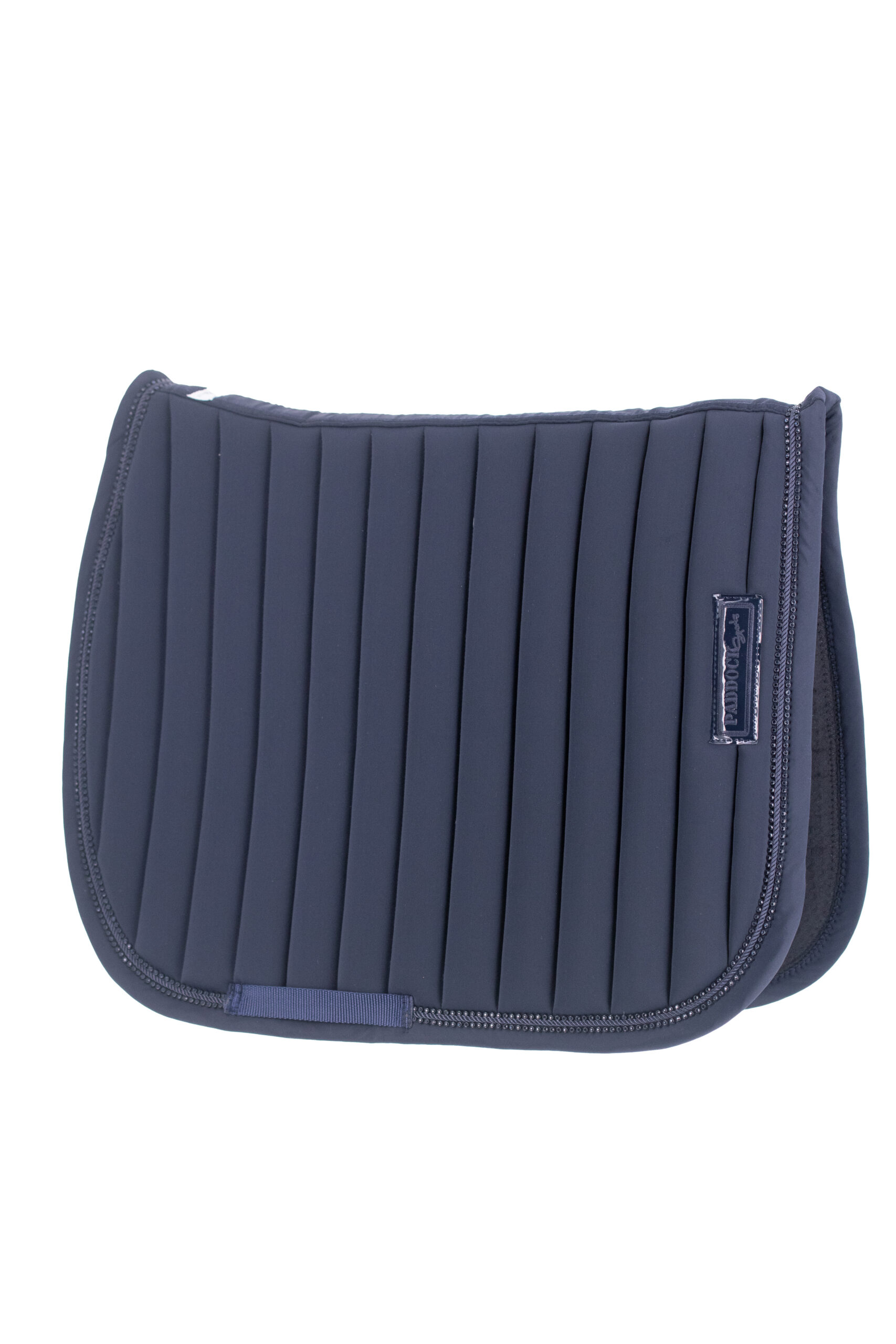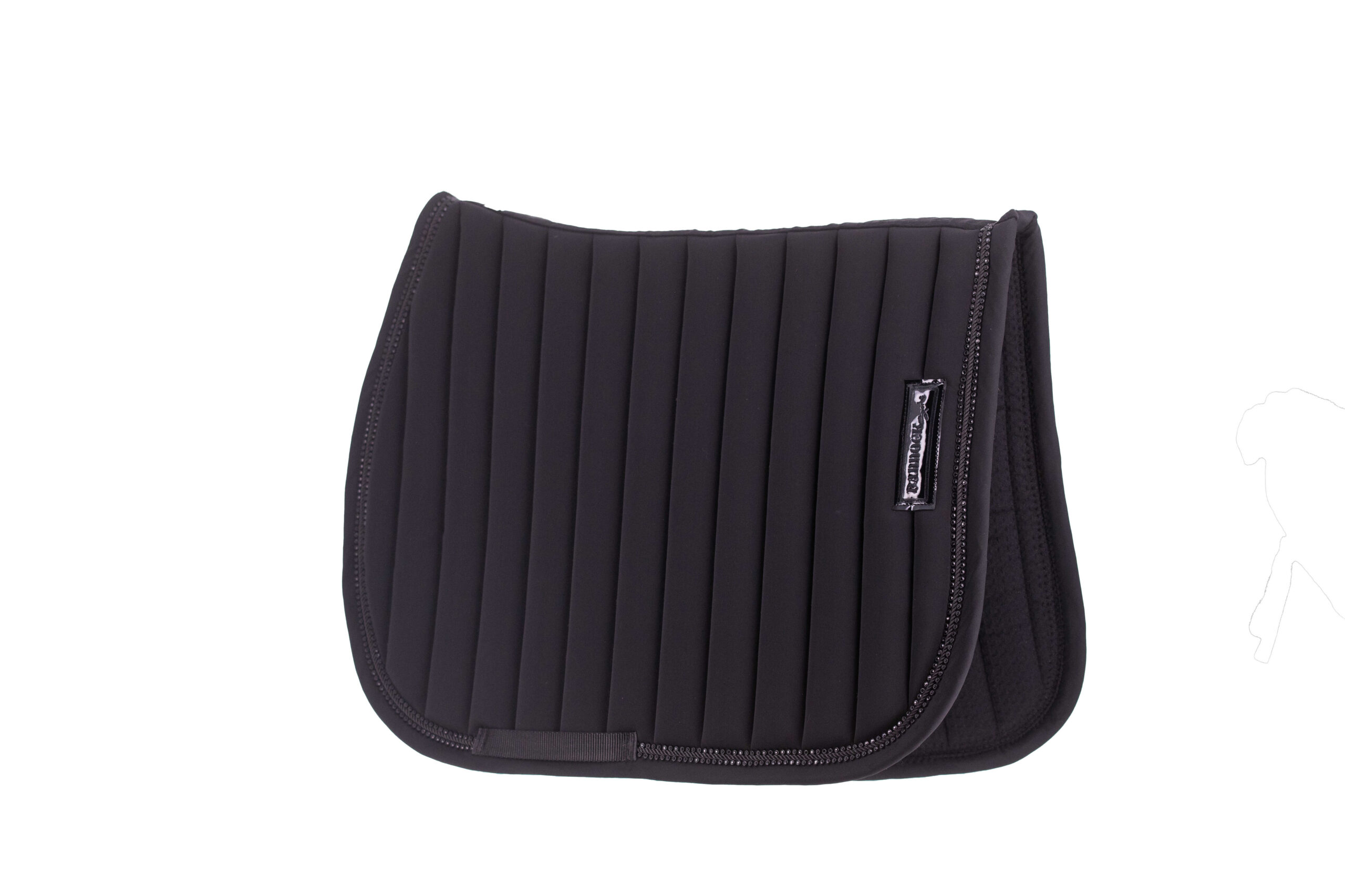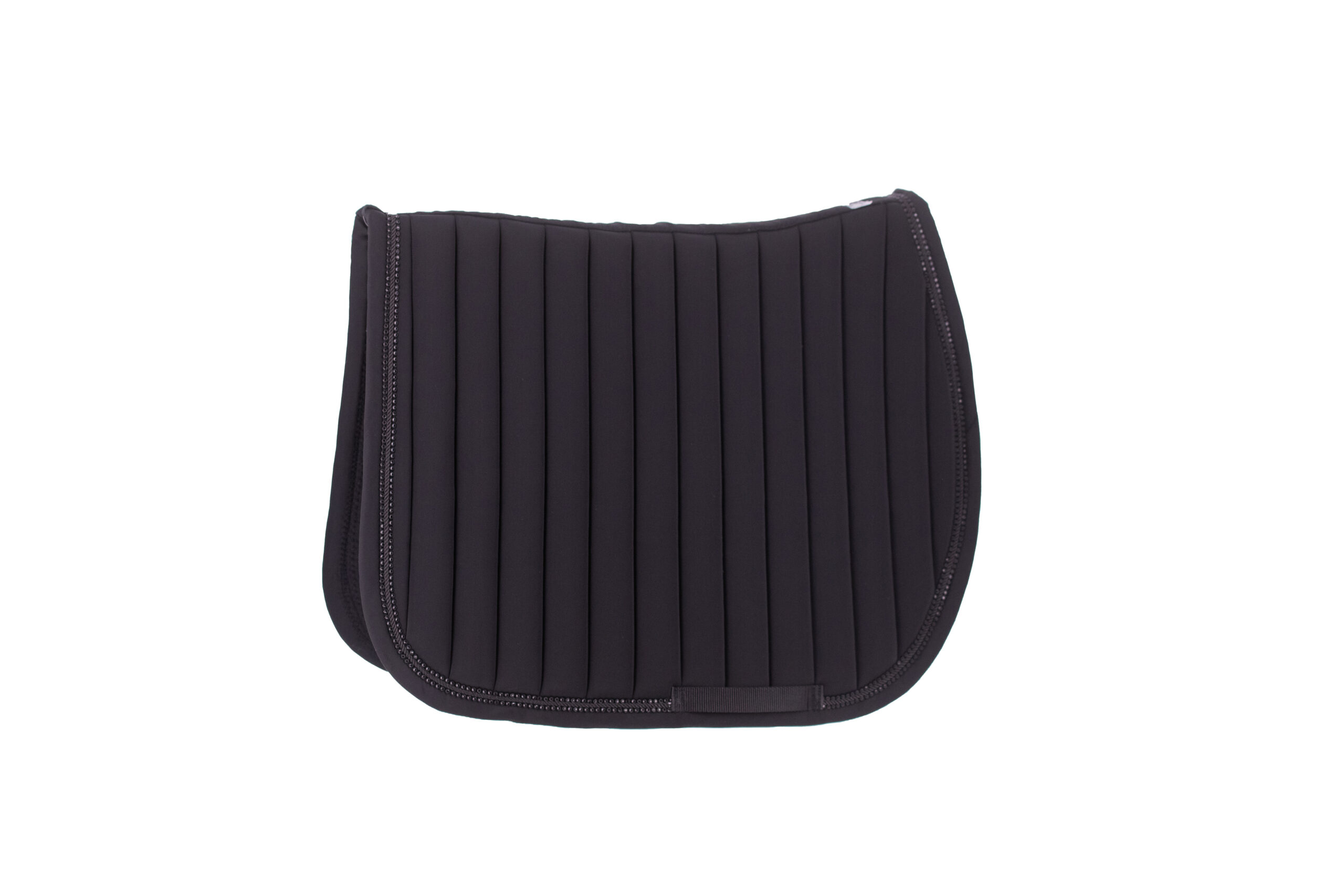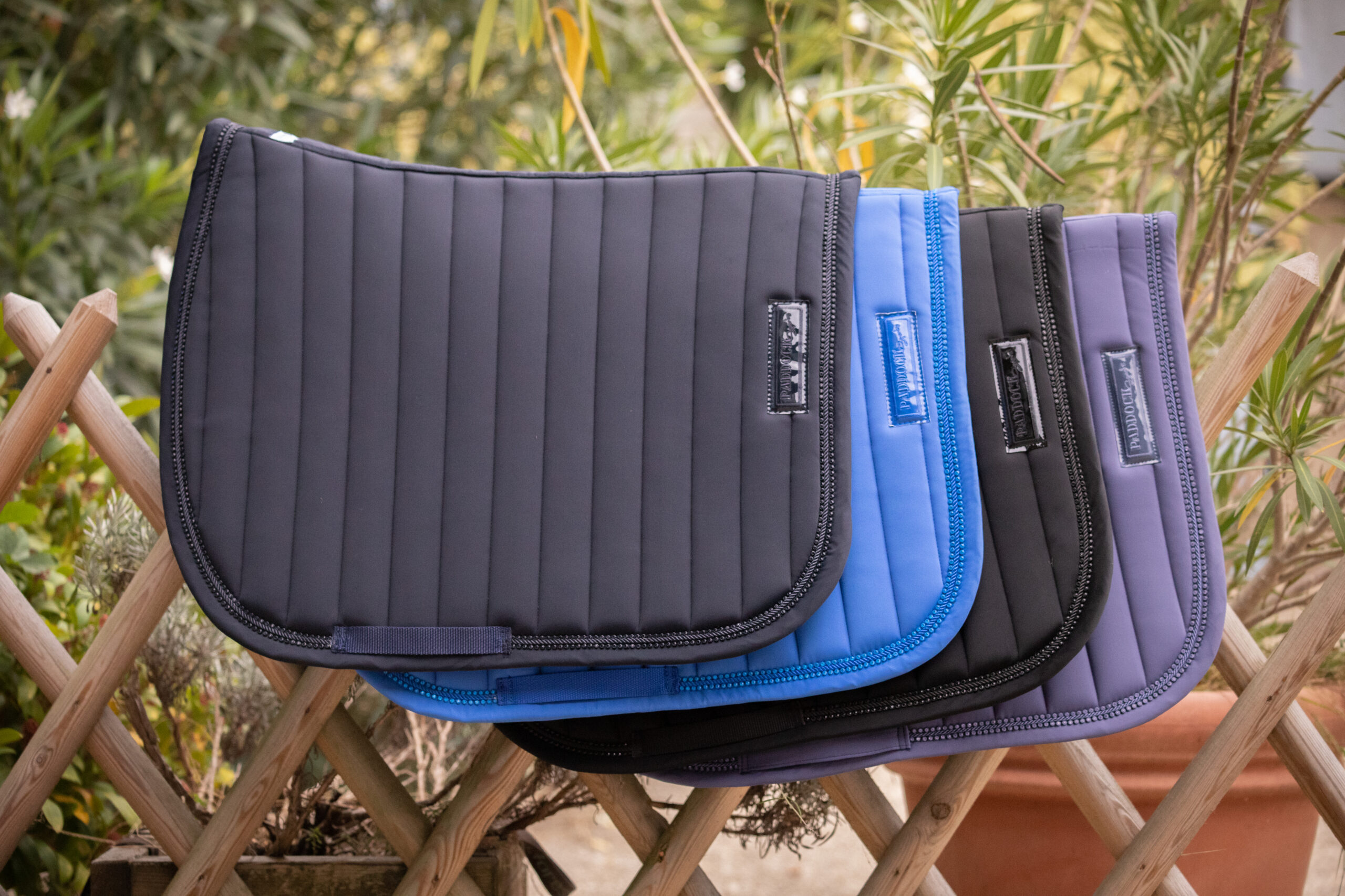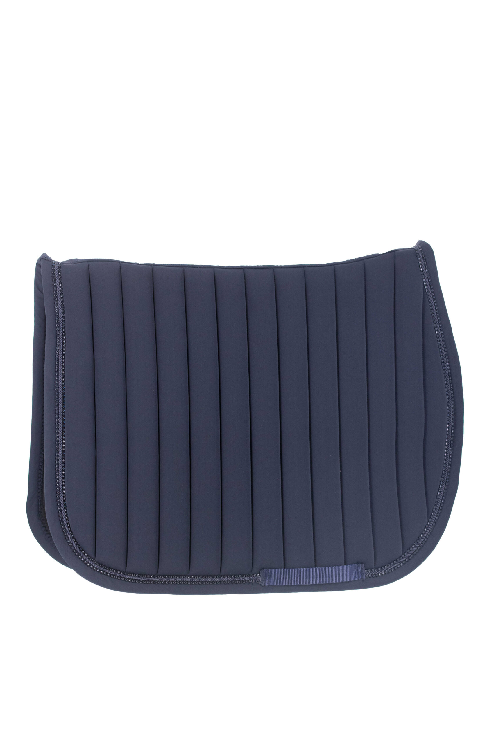 The Verticali Paddock Saddle Pad features thick, padded vertical quilting. It is also decorated with a double row of rhinestones, giving it a very girly touch. It has a well-defined back line and two girth loops to increase the pad’s stability under the saddle. It is available in six different colors: navy blue, black, red, pink, light blue, and gray. Composition: 100% polyester. Size guide: It fits most Size D horses and ponies. Care tips: We recommend machine washing your Verticali rug using a wool program and a gentle spin cycle. Do not tumble dry.