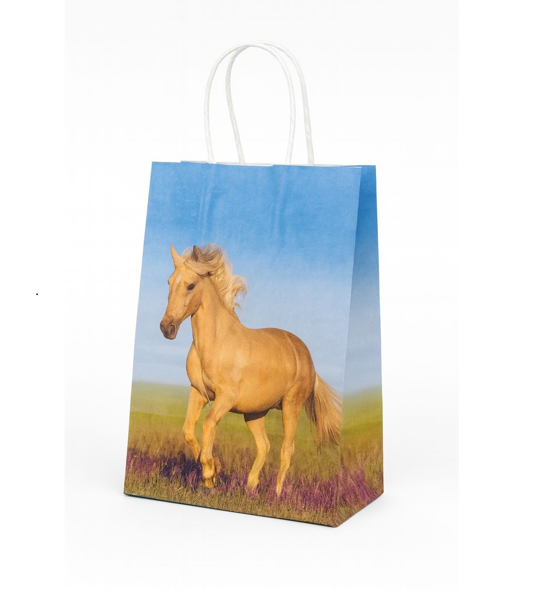 Beautiful and durable paper gift bag featuring a horse motif, perfect for any horse lover.