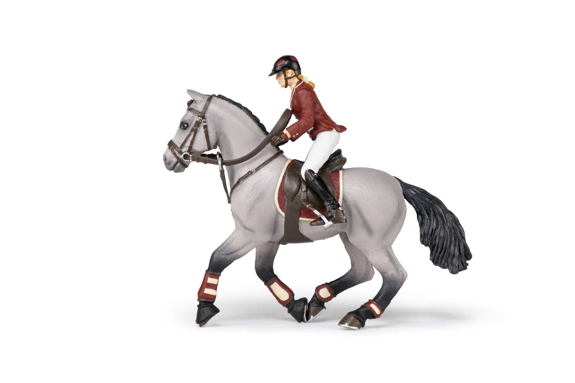 Hand-painted with incredible realism. The anatomy of the horse and rider is respected in every detail.