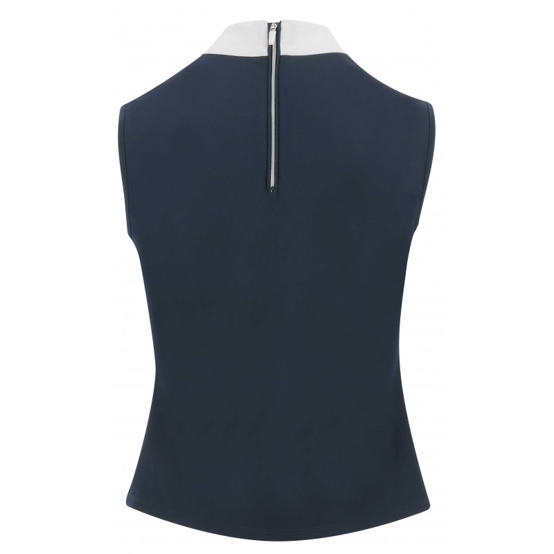 Competition polo shirt, 6 years sleeves. FEATURES * Breathable. * Lightweight: Lightweight, soft and comfortable fabric. * STRETCH. FEATURES – Close-fitting cut. – Back zip closure. – White stand-up collar. – 6 years sleeves. – Contrasting elasticated lines. Composition: 83% recycled polyester, 17% elastane, 230 g/m².