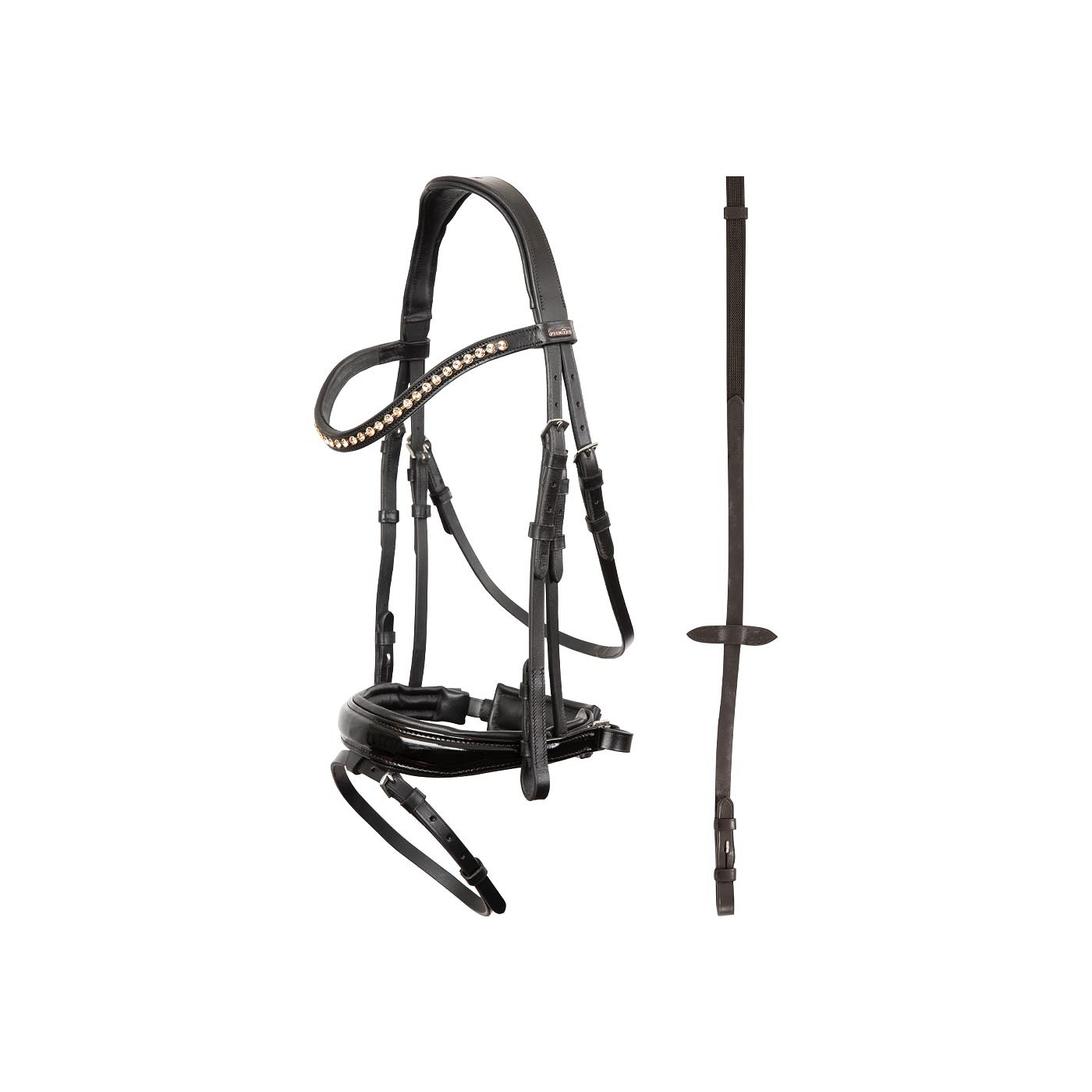The Premiere bridle Brest is made of soft, supple leather and is anatomically shaped, which ensures a good fit and optimal comfort for the horse.