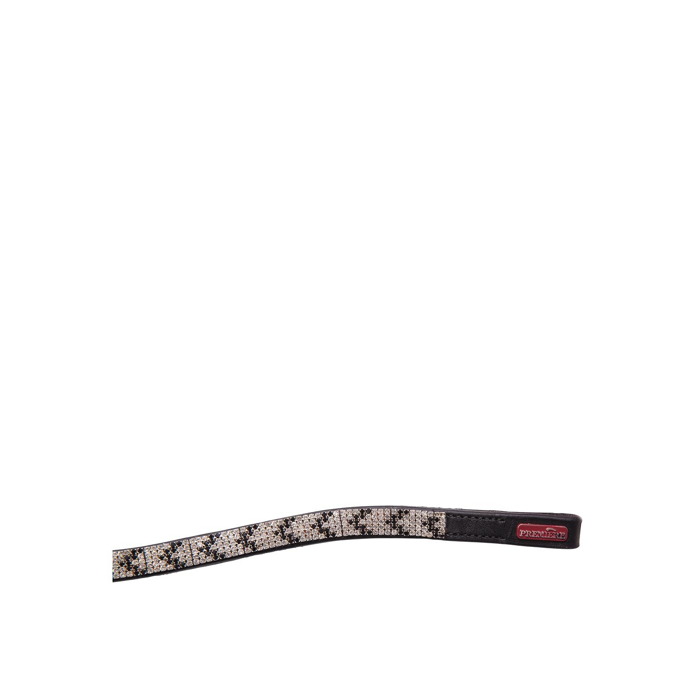 Curved browband with 5-row chain in black+white imitation diamonds with a contrasting arrow pattern and soft leather lining.