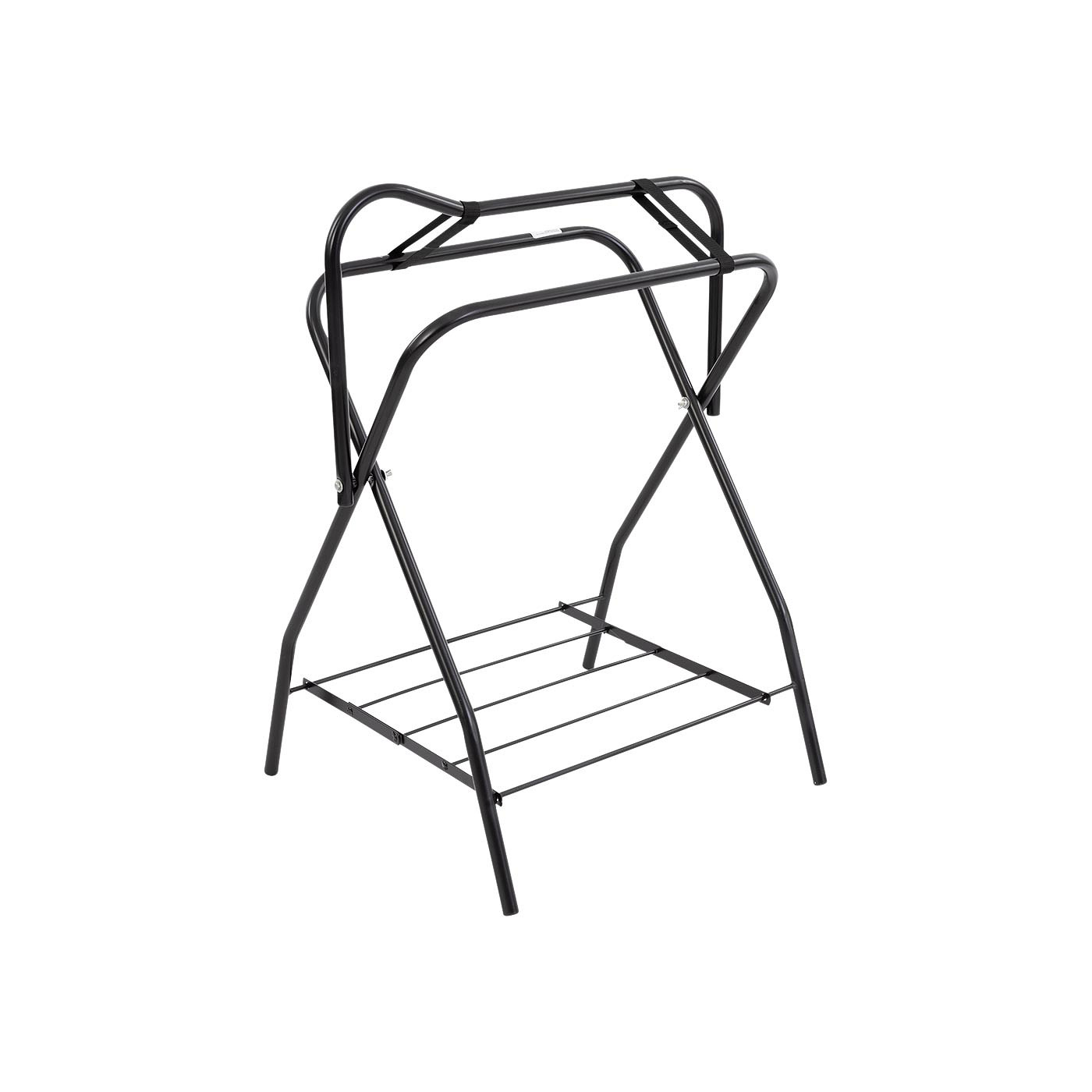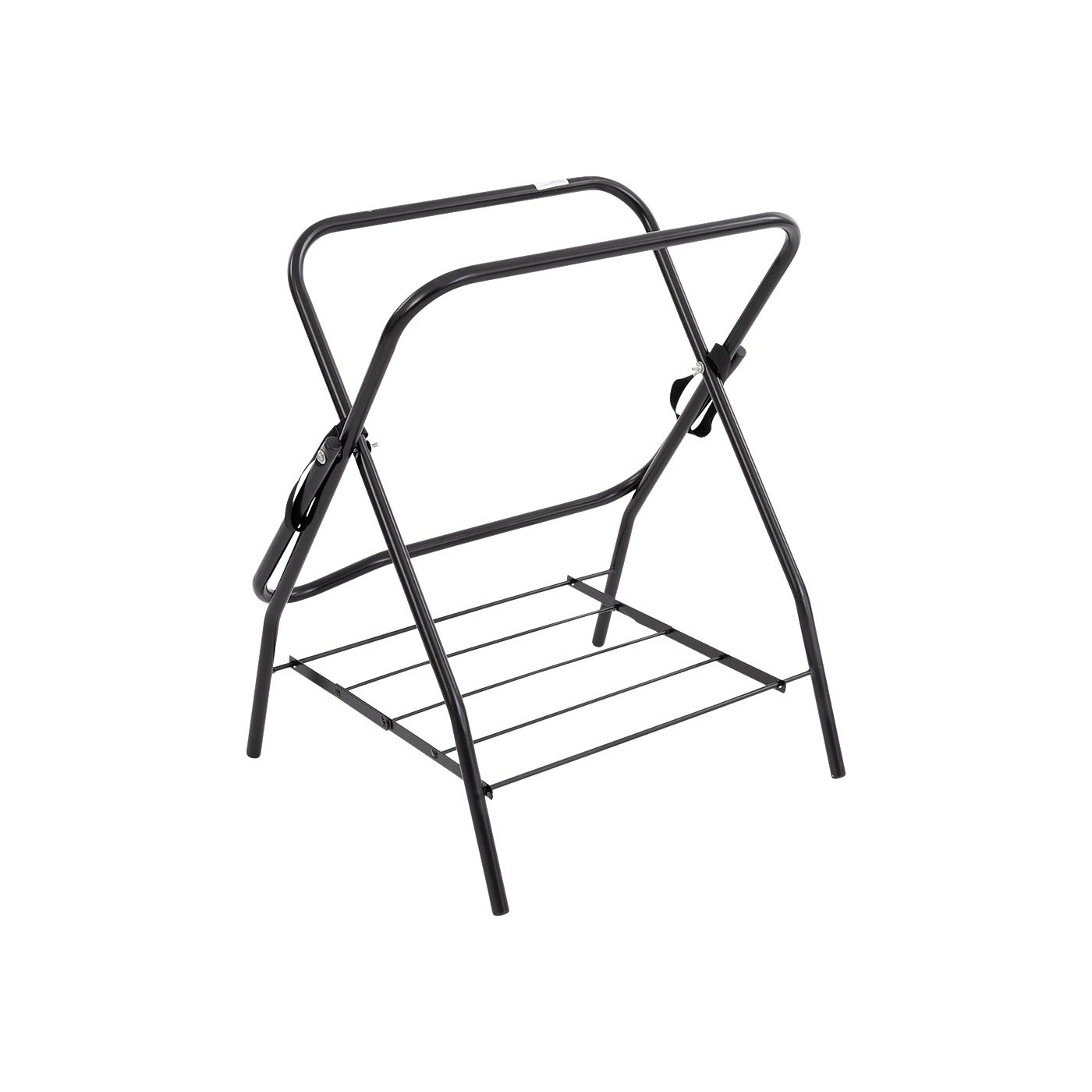 This practical saddle display stand is foldable and easy to move. The tubular frame is powder-coated for extra strength.