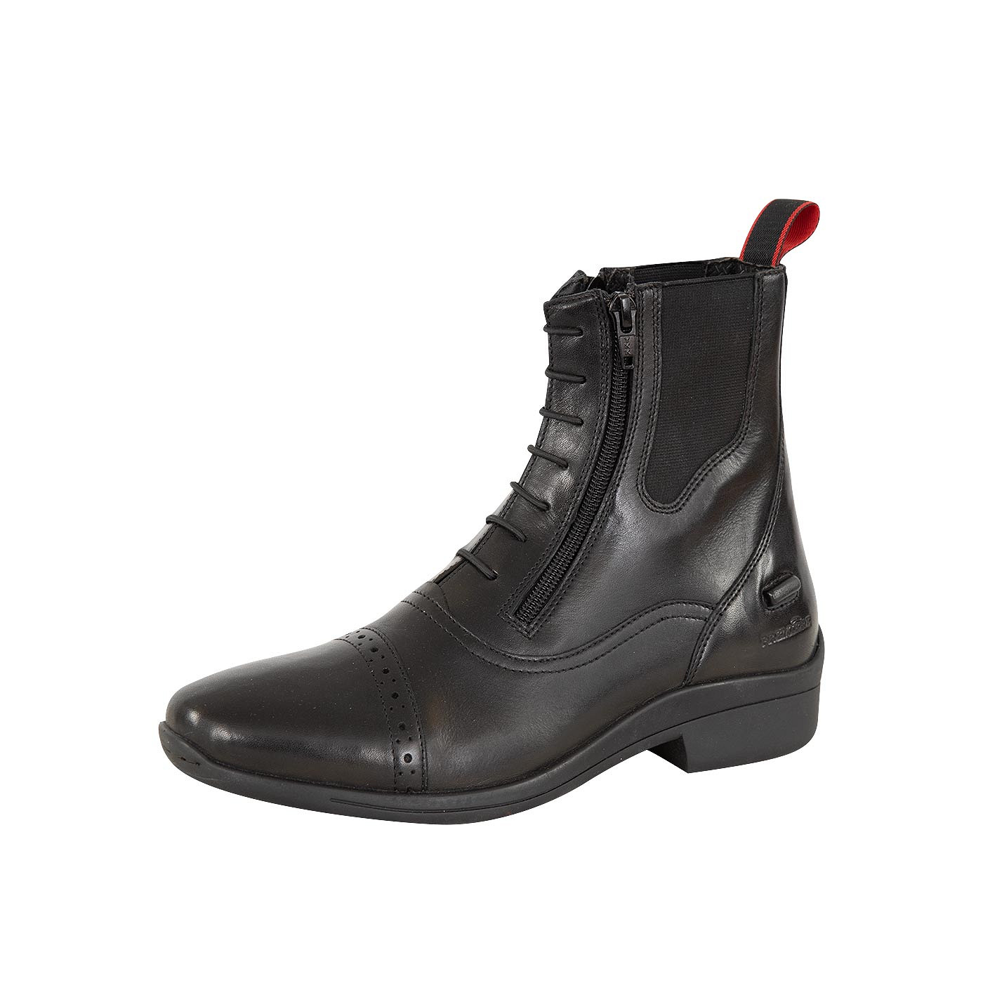 The double front zipper, elastic side panels and elastic laces together ensure a perfect fit. The insole with soft cushions and the reinforced heel provide support and protection. The jodhpur contains a Cambrelle® lining, which is quick-drying, comfortable, extremely durable and highly resistant to mildew and bacteria. Finally, this jodhpur is provided with a rubber anti-slip sole with a special pattern for the perfect grip.