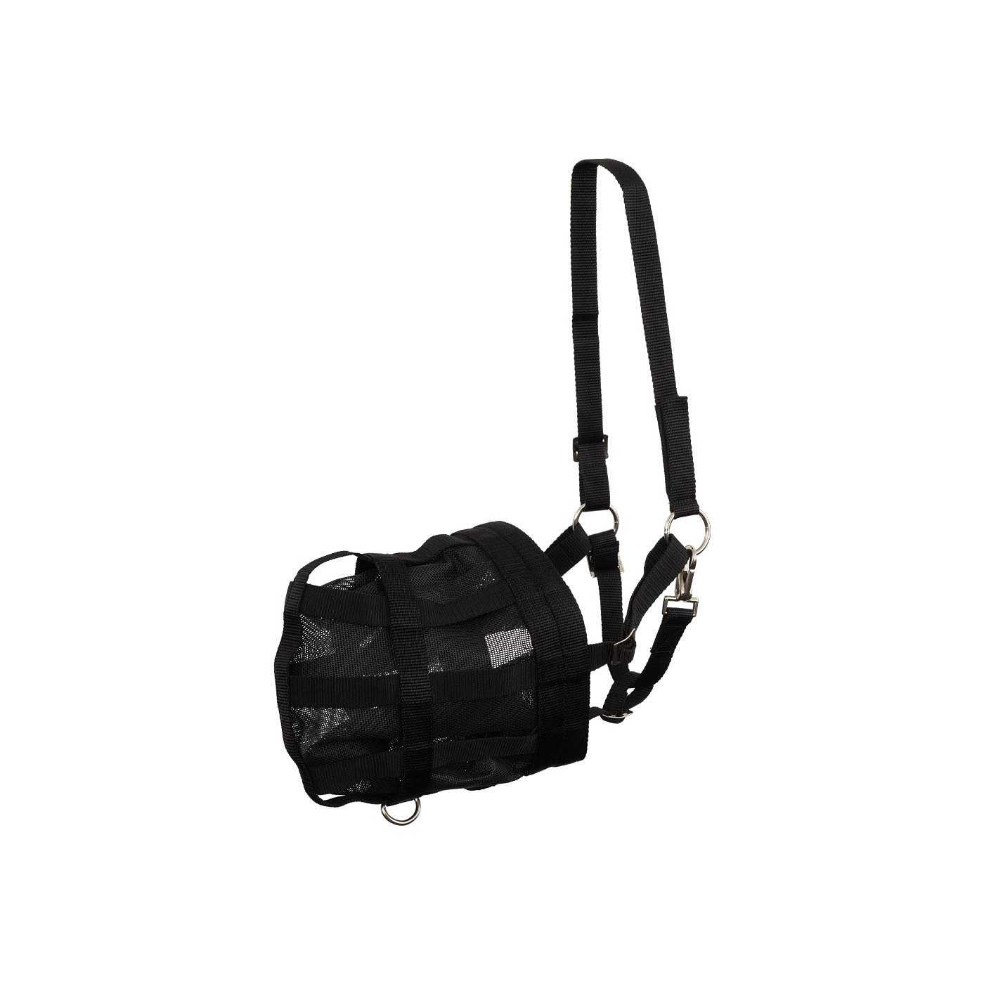 This sturdy sand mask made of fine mesh prevents your horse from eating sand. On the inside, the mask is lined with soft neoprene at the edge to ensure that the mask does not chafe. The mask is adjustable for a perfect fit and is easy to open and close thanks to the snap hook and Velcro. At the bottom there is a D-ring to attach a lead rope.