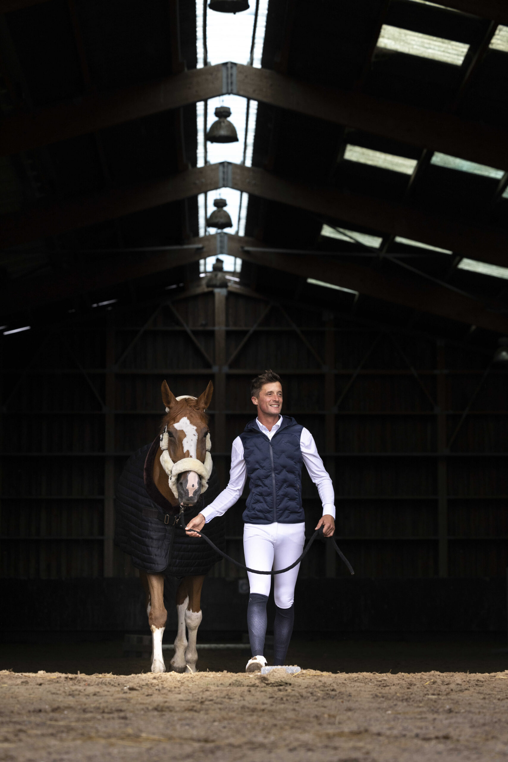 The modern and sporty “Spirale” vest, thanks to its seamless quilting, was developed for riders who want a functional and comfortable vest. WATER-REPELLENT: The outer fabrics are treated with a durable water-repellent finish (DWR). Waterproof zipper and waterproof zippered pockets. THERMAL REGULATION: “Ball padding” padding. ELASTIC: Main fabric made of multi-stretch fabric for optimal freedom of movement. *Ball padding: Padding made of small synthetic spheres as an innovative alternative to down. This high-quality padding is not only washable and quick-drying, but also extremely lightweight and breathable with excellent insulation. The small air pockets between the numerous synthetic spheres ensure consistently high protection against the cold. FEATURES: – Straight cut. – Chin guard. – Smocked lower jacket edge. – Cuffs and hood trim with elastic, bias-stitched trim. – Hood fastening at the back. Material composition: Outer fabric: 100% polyester. Padding: 100% polyester ball padding. Lining: 100% polyester. Machine wash at 30°C.