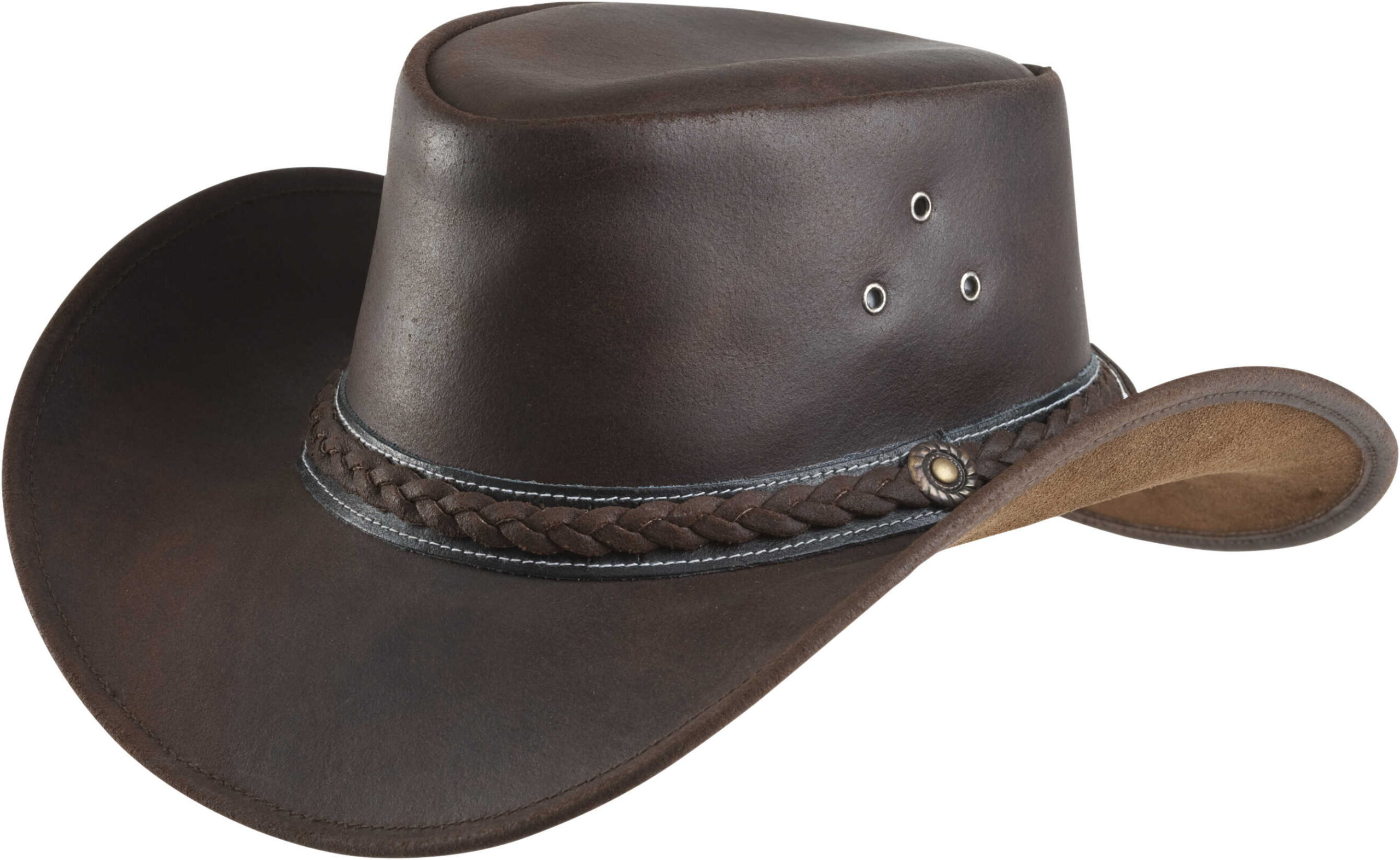 – The crown is surrounded by a black strap decorated with a brown split leather braid and aged metal daisies.