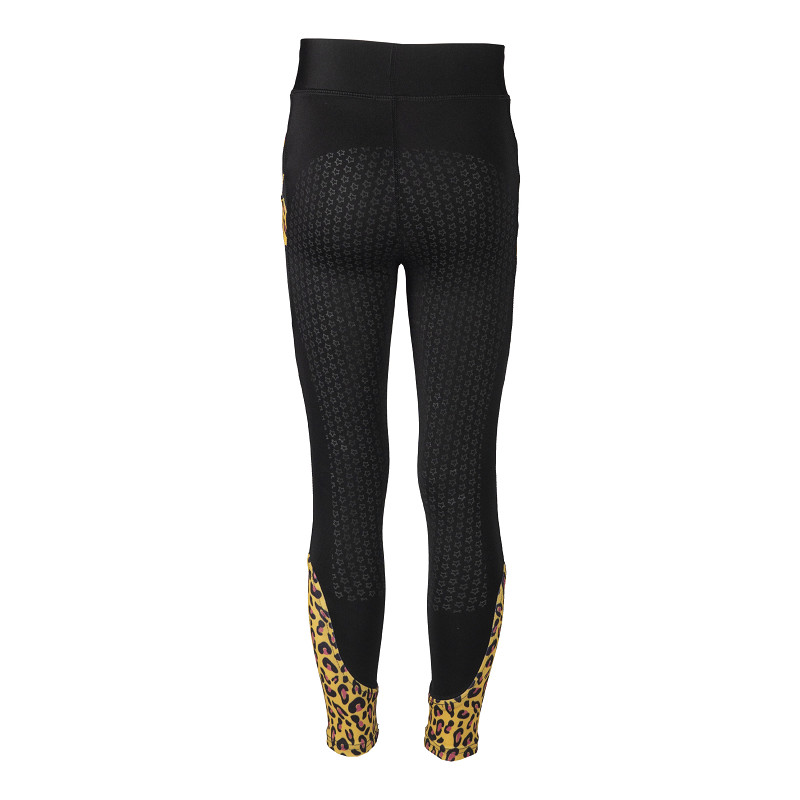 Junior riding legging with leopard print on ankles and thigh pockets.