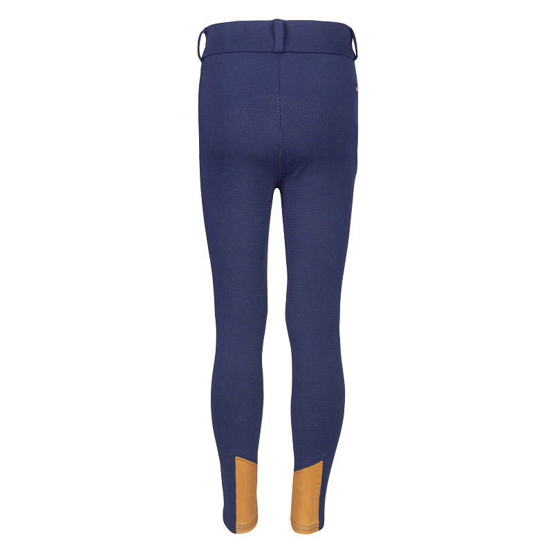 Junior riding leggings with elastic waistband and a front zipper pocket deep enough for a mobile phone. Product specifications: < Fully elasticated waistband Front zipper pocket deep enough for a mobile phone Various artwork on the front and thigh Elasticated ankle inserts in contrasting colours Full silicone seat Material: < 90% Polyester 10% Spandex 360 380 gsm