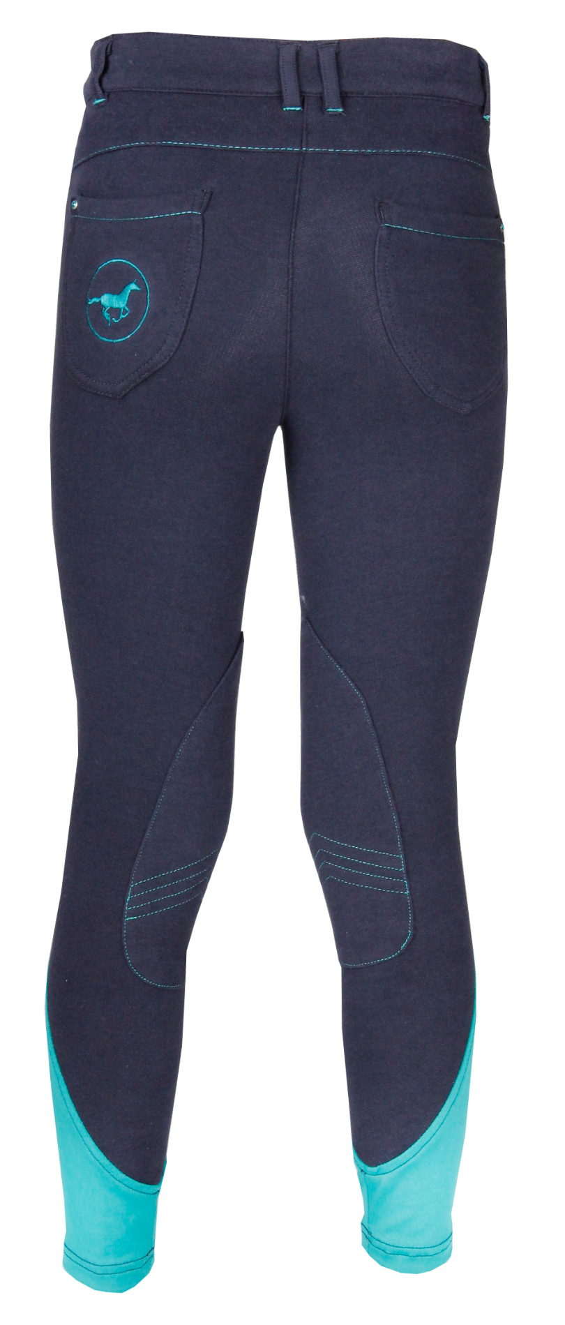 The Evy slimfit has fabric knee patches and a phone pocket on front. The breech is finished with