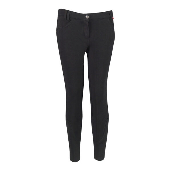 The Julia riding breeches have a very comfortable fit because they are made of cotton. The breeches are designed with contrasting belt loops and fabric knee patches. Product specifications: Fabric knee patches Contrasting belt loops Seat seam Material: 92% cotton 8% elastane knitted