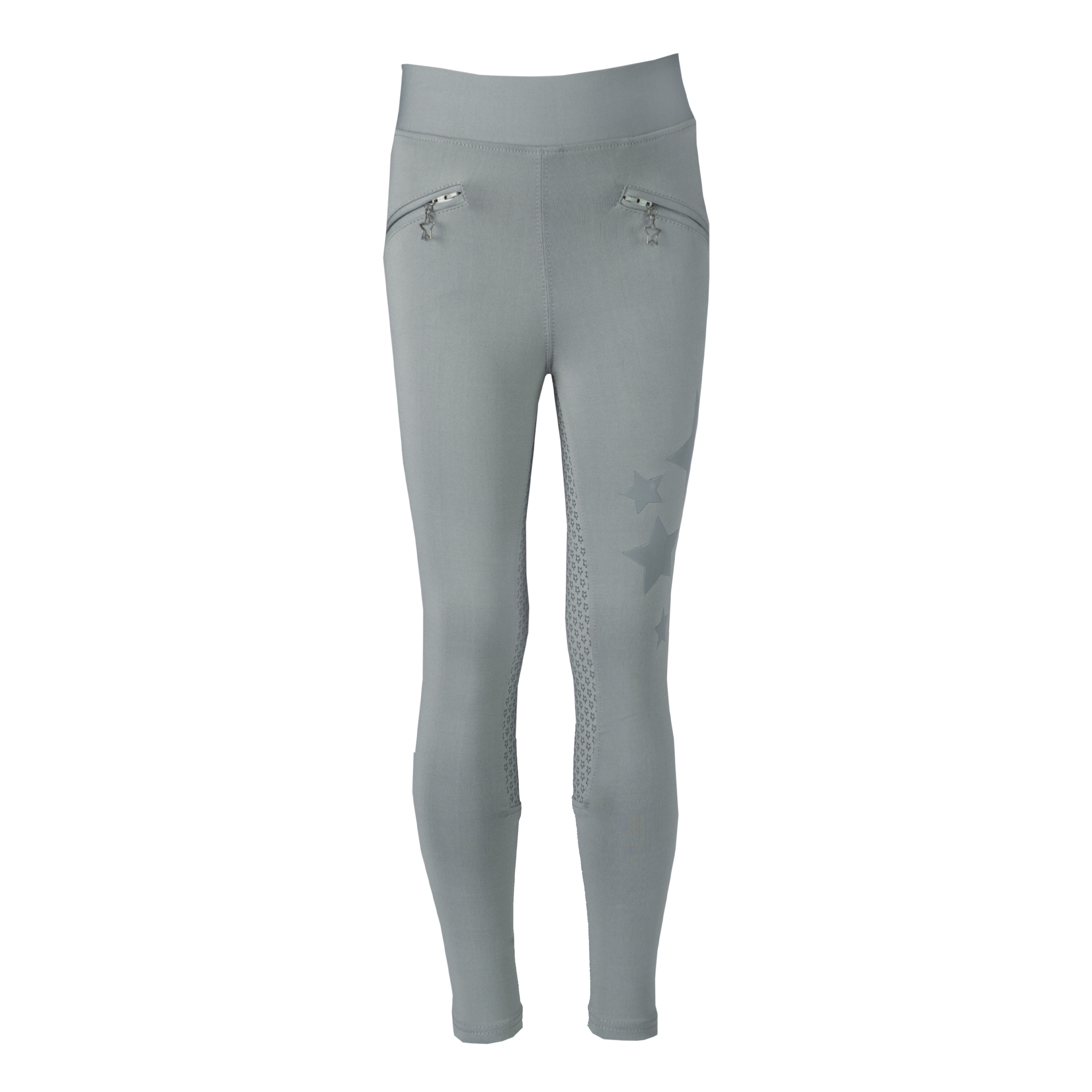 Junior riding tights with a rubber star print on the left thigh. The printed matte silicone full seat ensures a firm grip in the saddle and the must-have phone pocket on the side is of course also included. Product specifications: Junior riding tights Two front pockets deep enough for a mobile phone Rubber star print on the left thigh Silicone full seat Material: 90% polyester 10% spandex woven