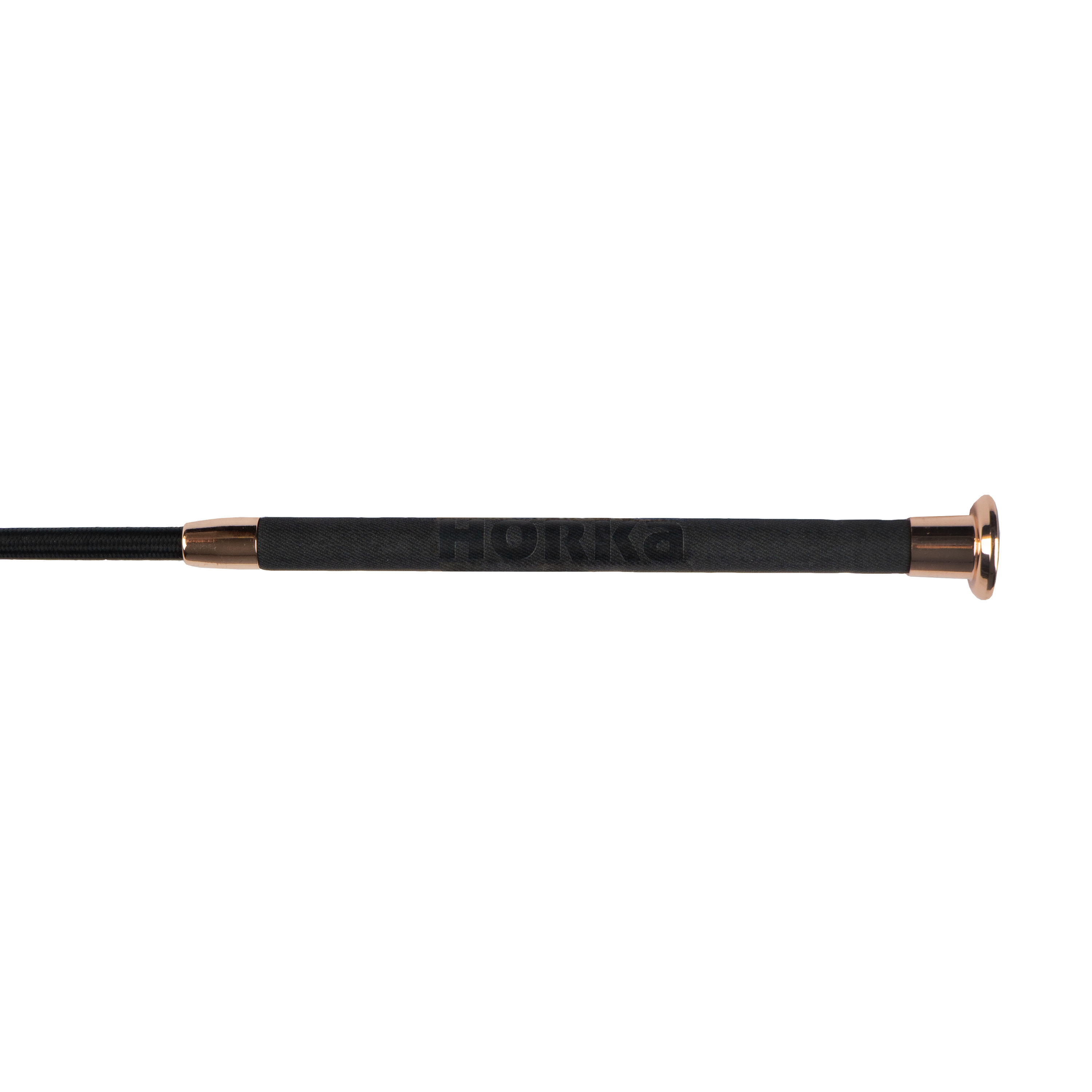 Whip with imitation leather handle. The length of the whip is measured including the whip. 65 cm for show jumping, 90 to 130 cm for dressage.