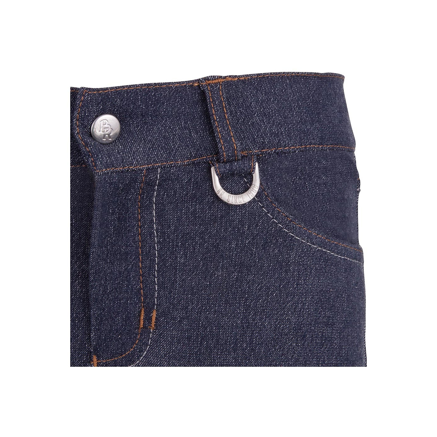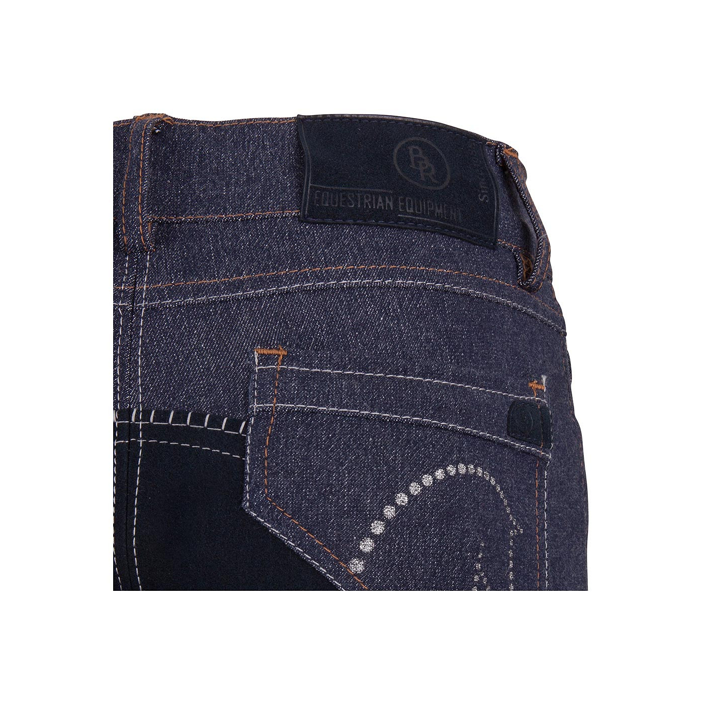 These close fit children’s riding breeches in 5-pocket style feature a ¾ microfiber seat. The back pockets are embellished with a silver-coloured print. The buttonhole elastic in the waist can be easily adjusted for a good fit. The waistband features belt loops. The elastic lower leg inserts ensure optimal comfort in the riding boots. Material colour version Red: 68% polyester, 22% cotton, 10% elastane. Material colour version Denim: 95% cotton, 5% spandex.