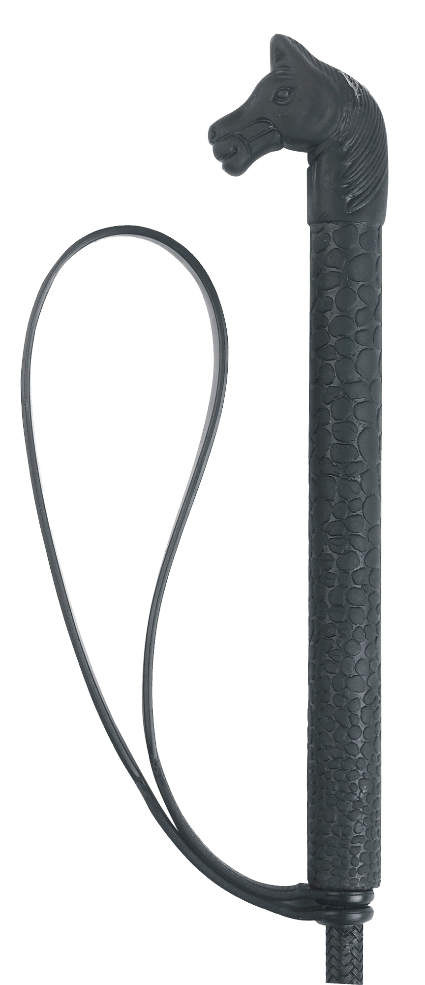 Riding crop 90cm black with horse-head-shaped PVC grip