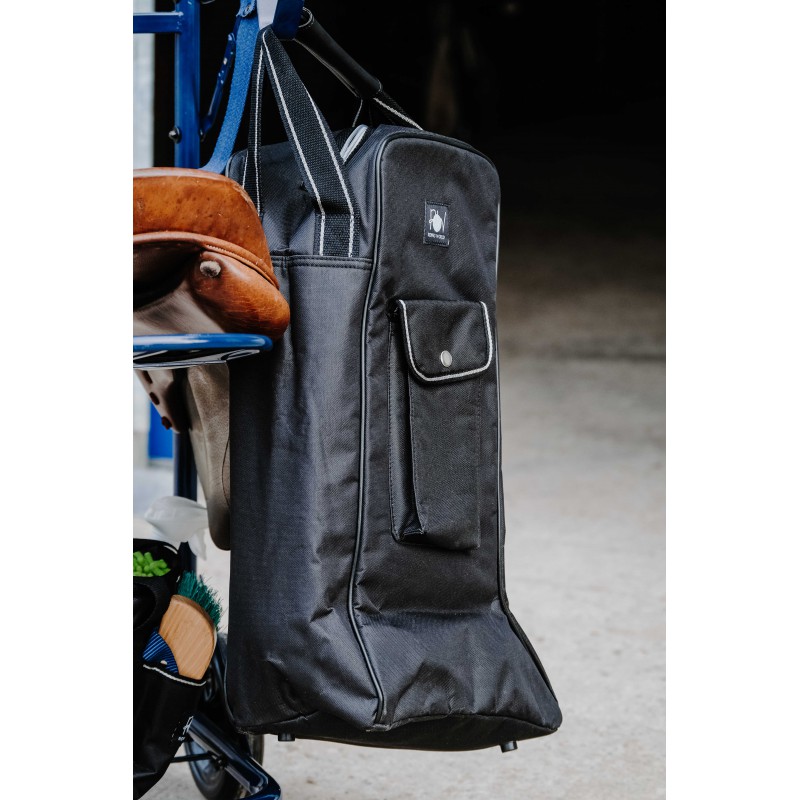 Praktiline ja vastupidav saapakott ratsasaabaste mugavaks transportimiseks ja hoiustamiseks. Lihtne, kuid funktsionaalne disain sobib suurepäraselt nii igapäevaseks tallikasutuseks kui ka võistlustele kaasa võtmiseks.