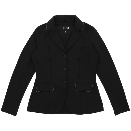 An elegant and stretchy competition jacket that combines style and comfort at an affordable price! The tailored cut and elastic fabric ensure freedom of movement both on the ground and in the saddle, while highlighting the young rider’s silhouette.