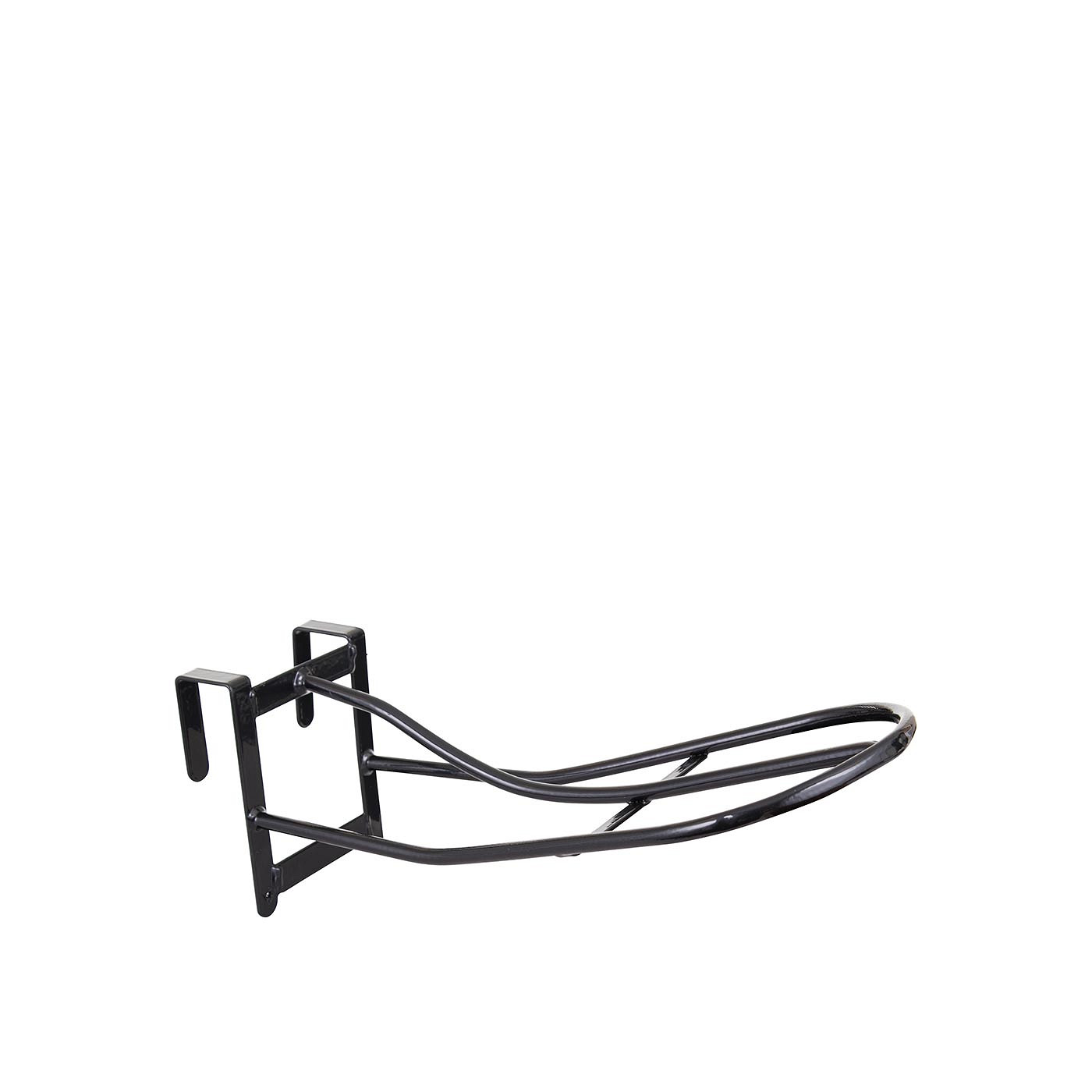 This saddle rack can easily be hanged on every edge, so you don’t have to drill holes. You can hang your saddle on the stable door, fence etc. This mobile saddle rack is also convenient at competitions or on holiday. Plastic coated. Dimensions: circa 60 x 24 cm.