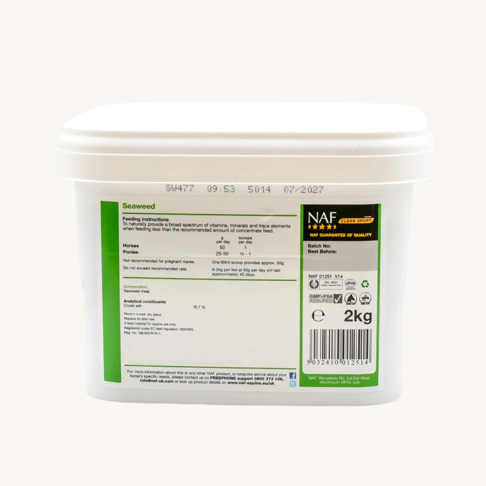 NAF Seaweed is naturally rich in iodine, supporting metabolism and promoting healthy thyroid function. It also helps maintain strong hooves, healthy skin, and overall wellbeing.