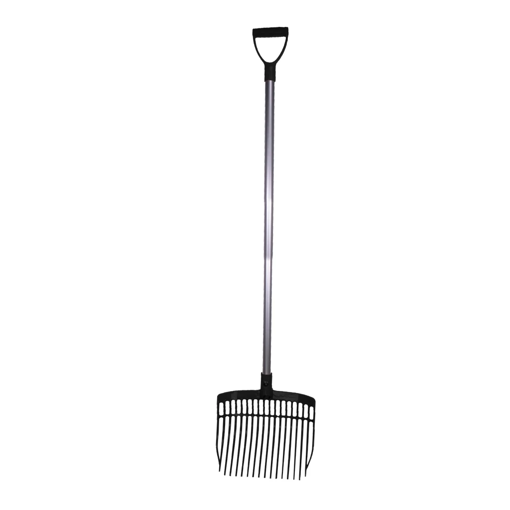 Praktiliselt purunematu sõnnikuhark komplektis sobiva 115 cm alumiiniumvarrega. Tugevast plastist valmistatud hark sobib suurepäraselt igapäevaseks kasutamiseks tallis ning on kasutatav nii kuuma kui ka külma ilmaga.