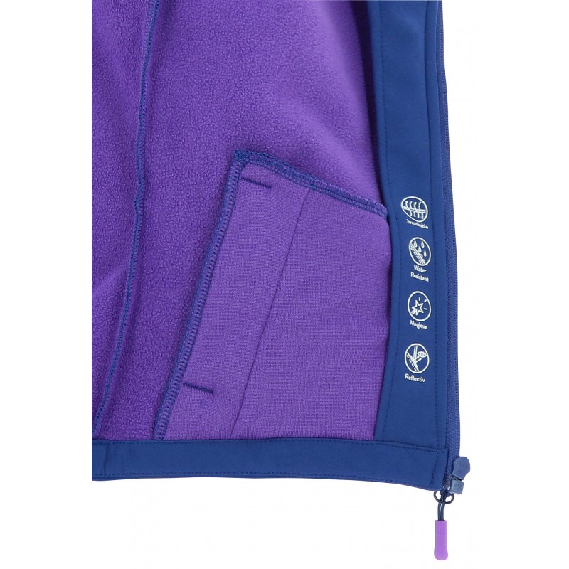 Softshell jacket with magic print fabric.MAGIC FABRIC: Magic fabric that once wet, reveals a print.Isolation: Fleece lining providing a very soft feeling of warmth. Hood with elasticated side tighteners for a better fit and better protection against bad weather.Windproof: Elasticated bias at the cuffs to limit air inlets.Reflective: Reflective print markings on the front and back for better visibility at night.FEATURES: Zipped hand pockets. Chin guard on the top of the zip to prevent injuries. Composition: Fabric 1: 100% polyester. Padding 100% polyester. Lining 100% polyester. Machine washable at 30°C, no tumble dry, no ironing.