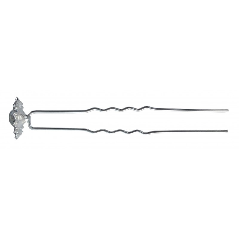 Set is composed of strass and imitation cultured pearls in the shape of a flower on a silvery coloured metal hair pin. 1 piece.