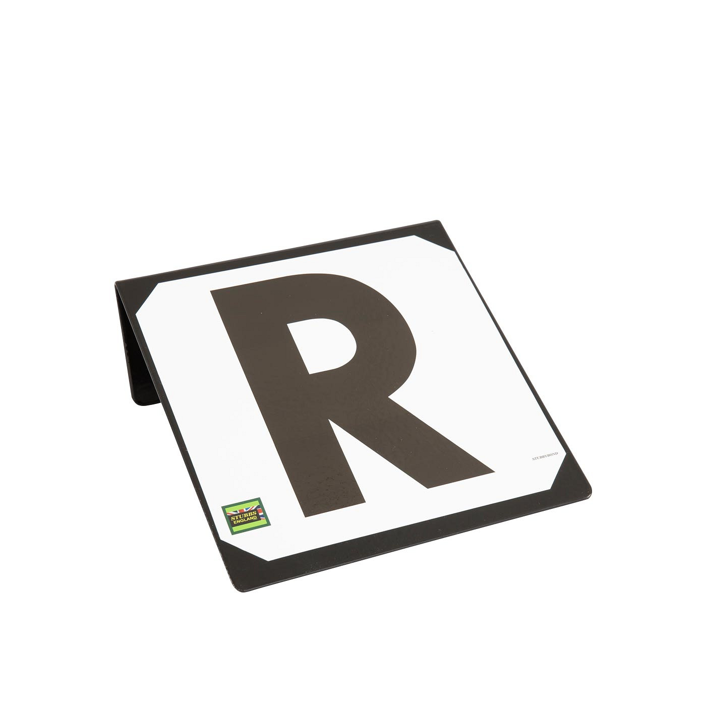 Classic dressage markers with a slanted back. Screwing is no longer necessary! Thanks to the clever slope of the back, the markers easily fit on fences up to 55mm thick. The heavier, steel design ensures that the markers stay in place even on windy days. This expansion set contains the letters R, S, V and P.