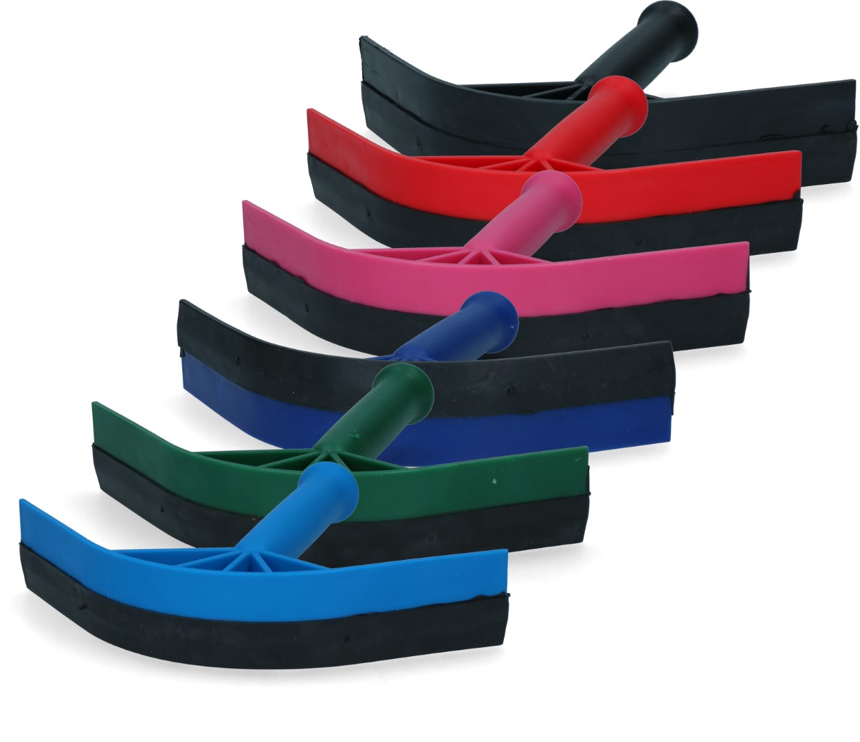 The sweat scraper is used after the washing or showering of your horse, to remove most of the water from the horse’s coat.