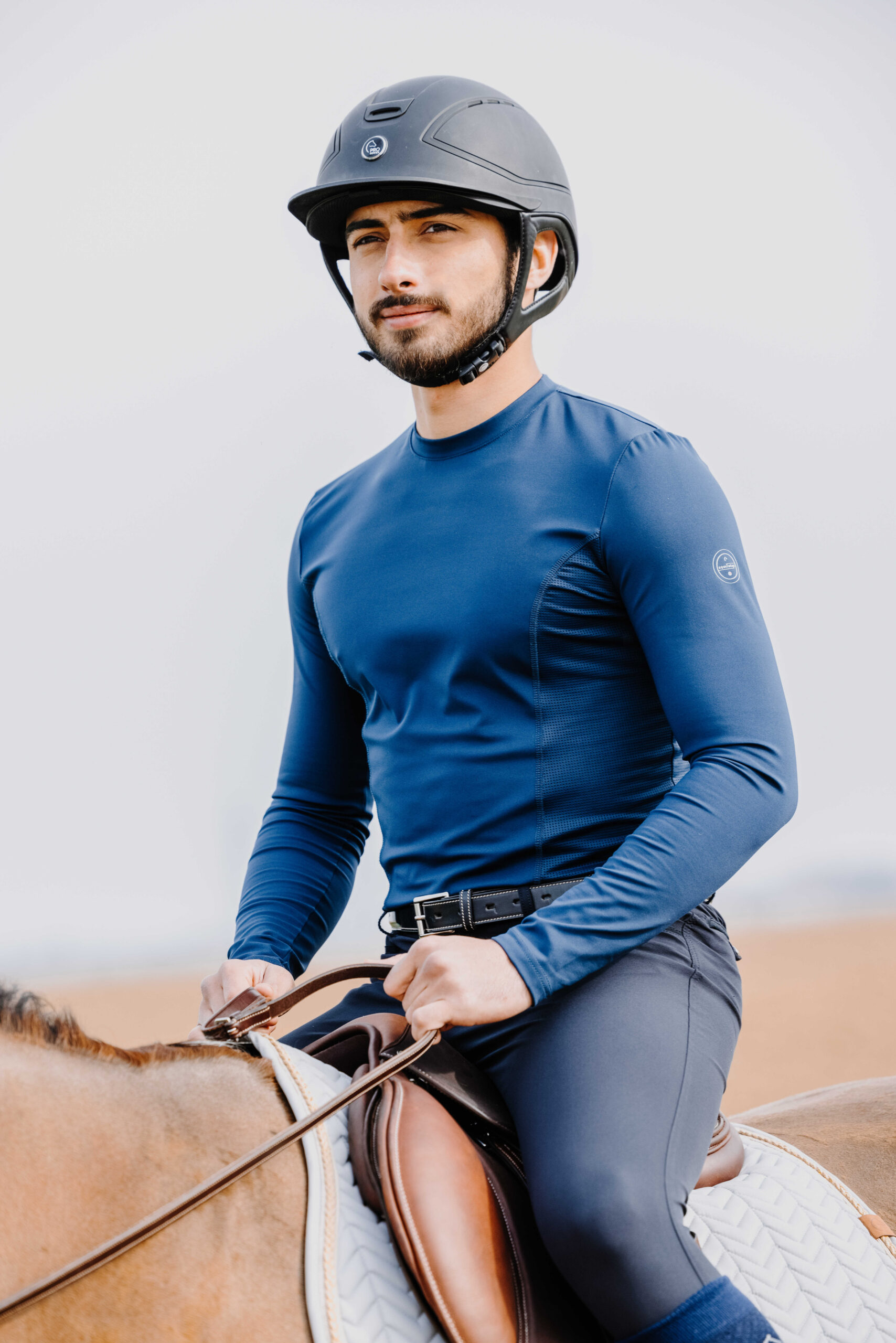 Technical long-sleeved T-shirt with stretch and moisture wicking properties. FEATURES STRETCH: stretchy materials Atmungsaktiv: materials that wick away moisture and dry quickly FEATURES – flat seams – mesh side panels – slim fit Main material: 83% recycled polyester, 17% elastane Contrast material: 97% polyamide, 7% elastane Green impact label.