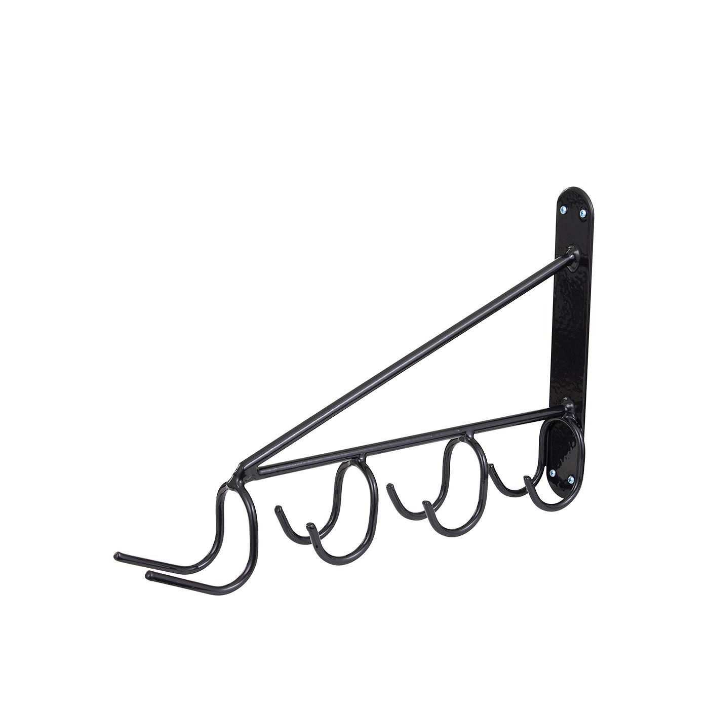 Ingenious and very space saving tool hanger. The three rear hooks easily take forks, shovels and rakes whilst the larger front position also takes a broom. 31 x 7 x 47 cm (h x w x d).