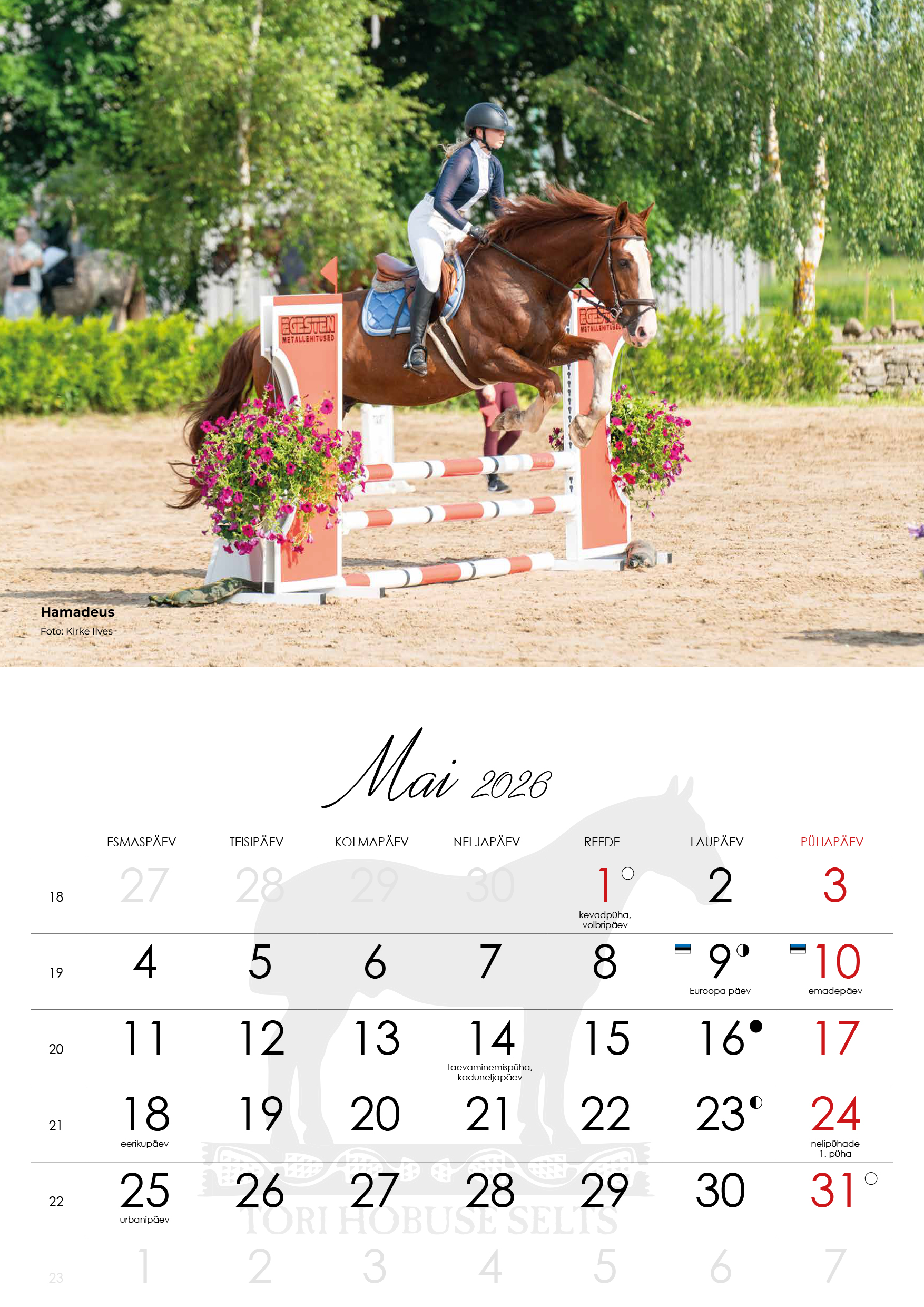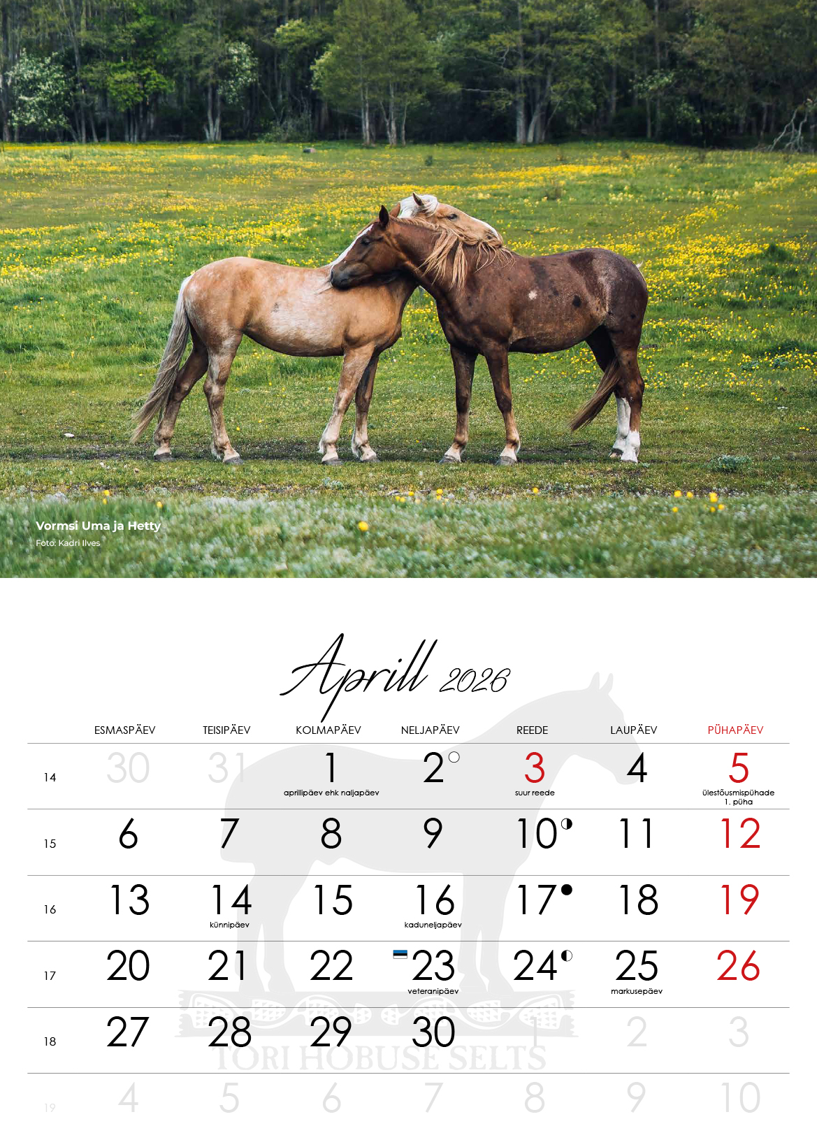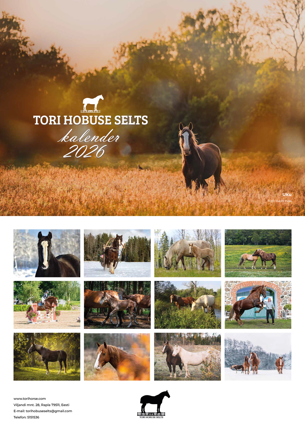 Kaunite fotodega kalender, mis pühendab iga kuu erinevatele Tori hobustele — ideaalne hobusesõpradele ja selle tõu austajatele. Kalender toob esile Tori hobuse ilu, mitmekülgsuse ja ajaloolise tähtsuse.